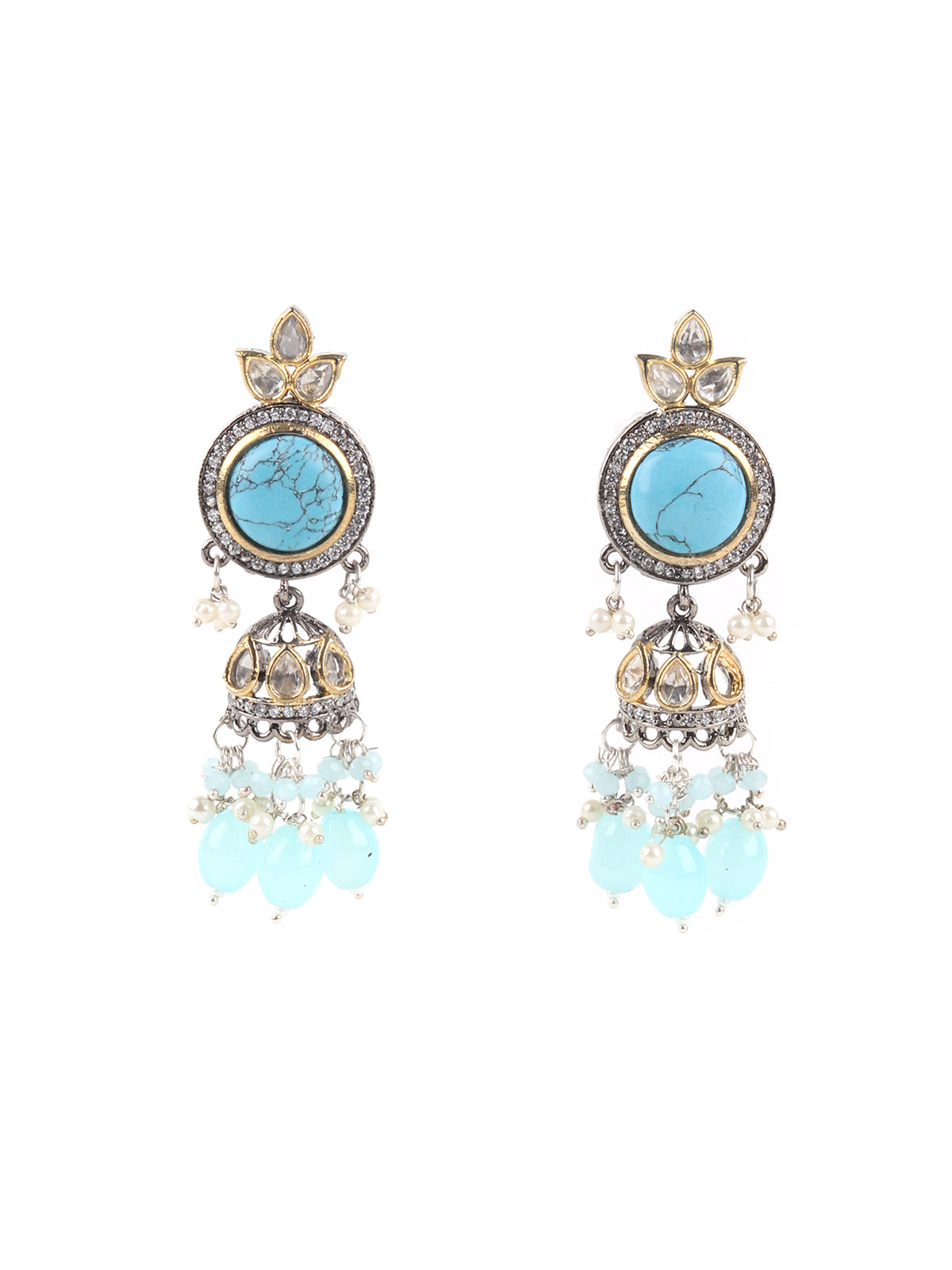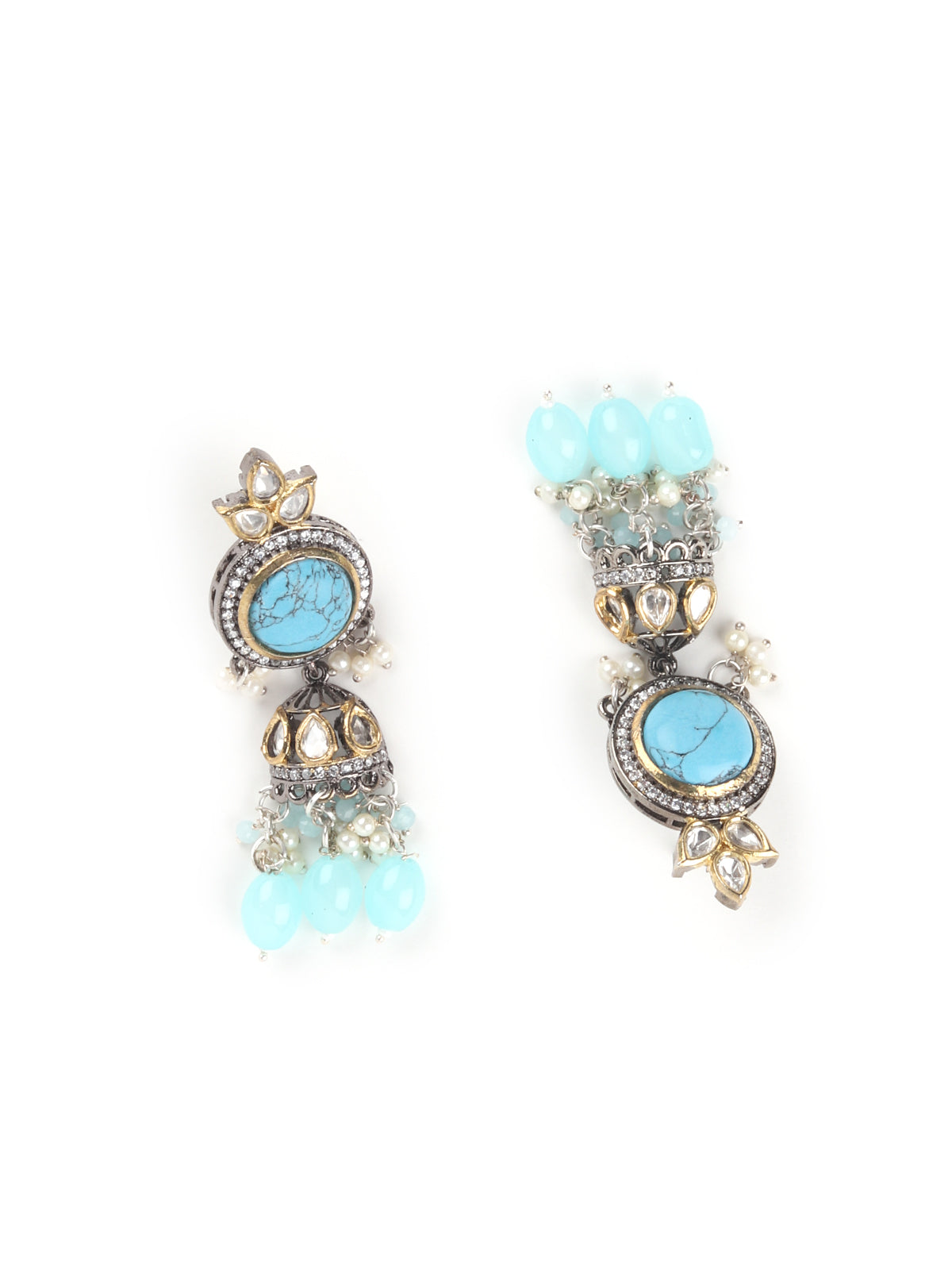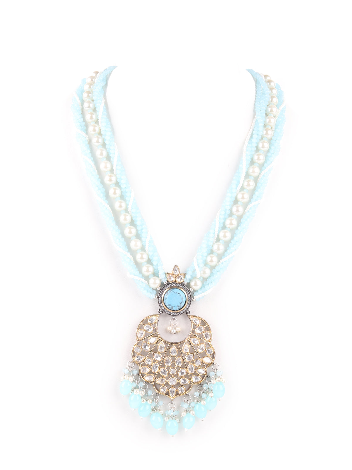 Rajwada Light Blue Layered Long Necklace Set For Women