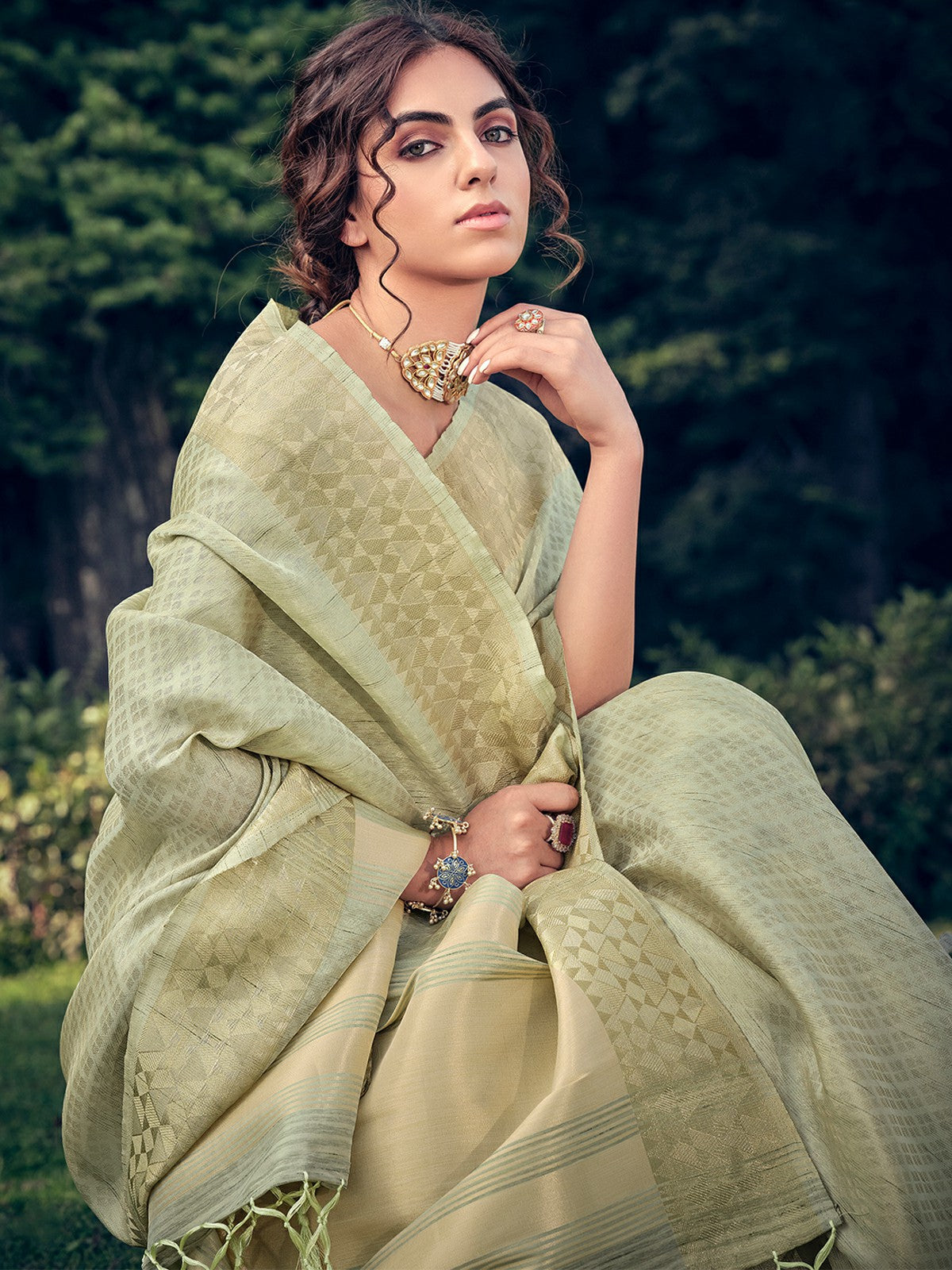 Rajwada Light Green Linen Tissue Saree for Women With Unstitched Blouse
