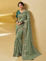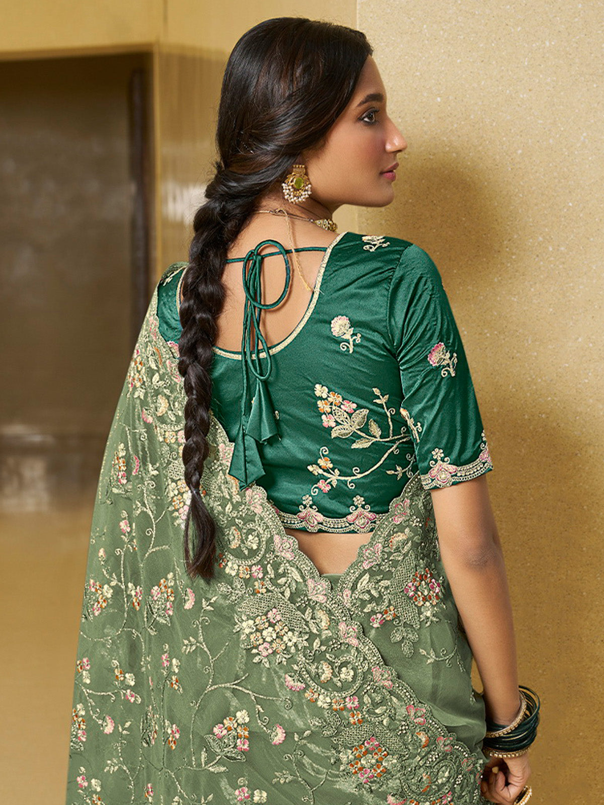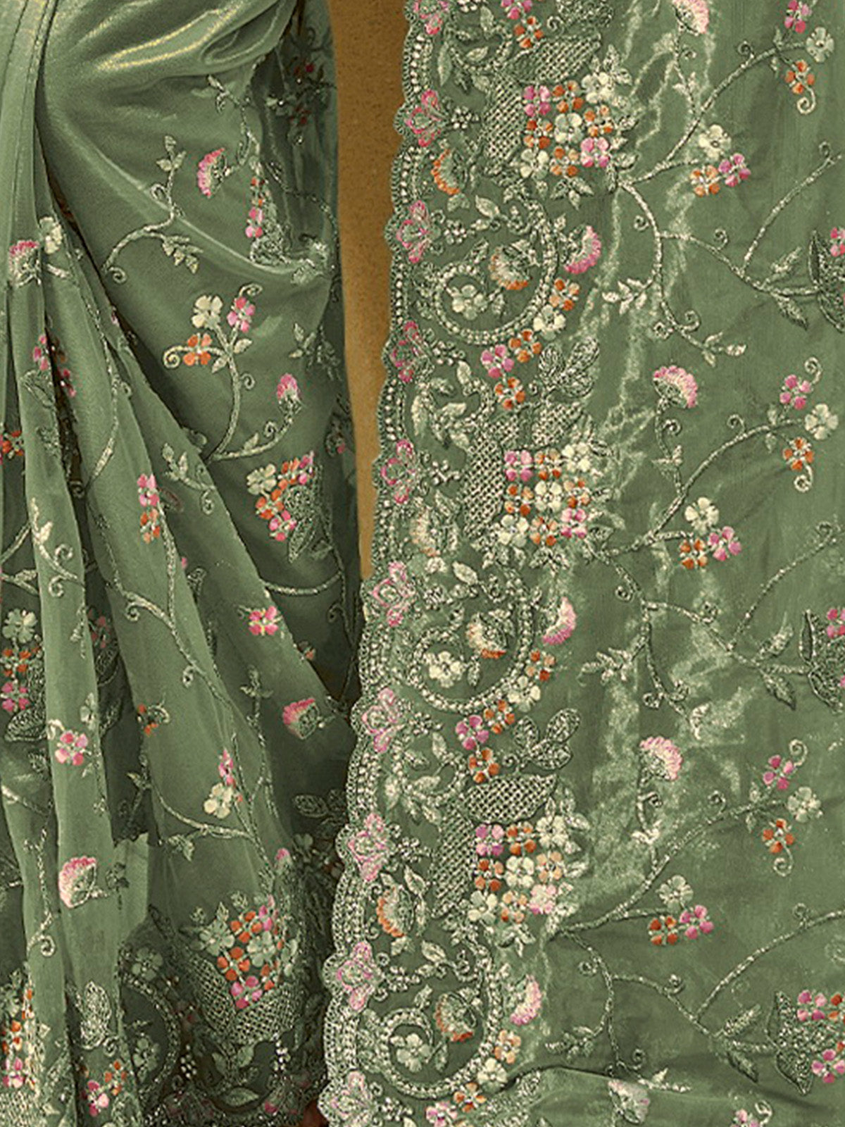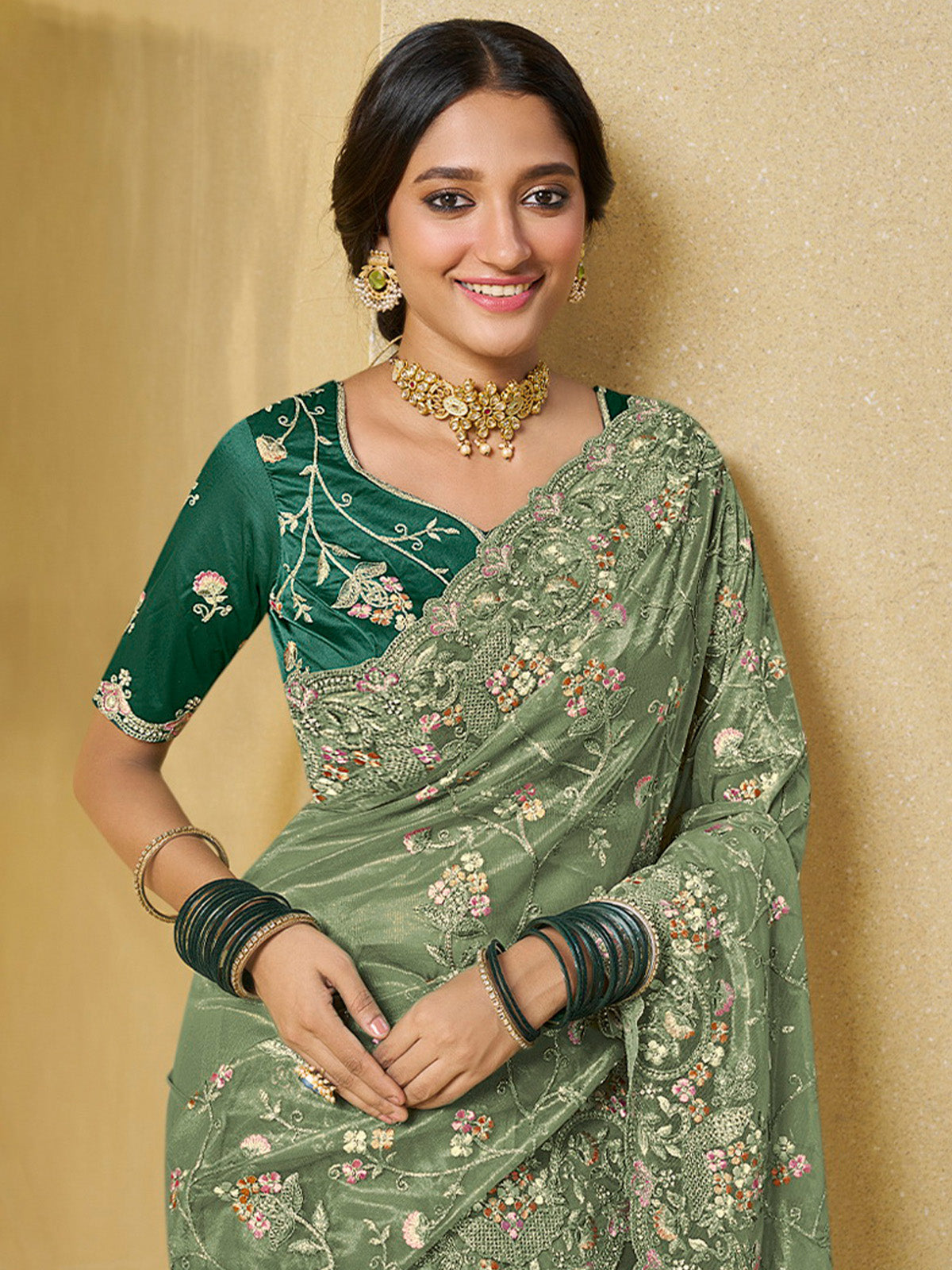 Gift yourself this lovely saree and be the cynosure wherever you go! Style this with a classy clutch and heels and you're good to go!