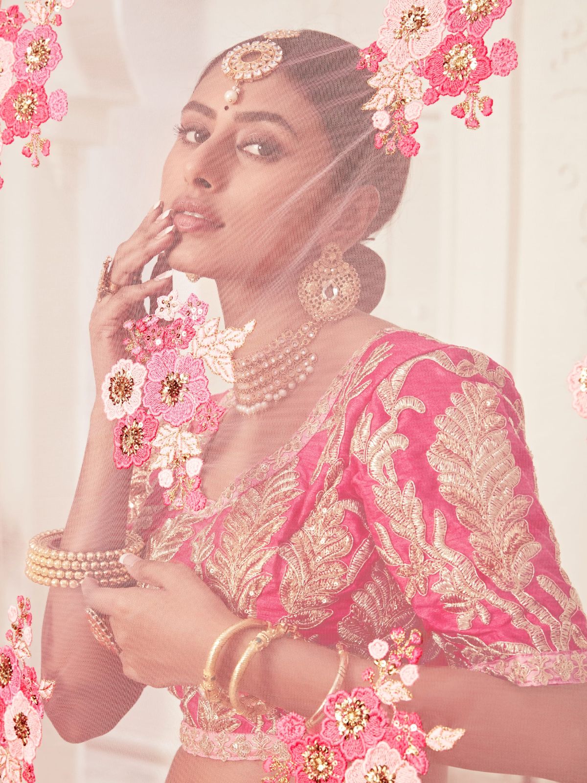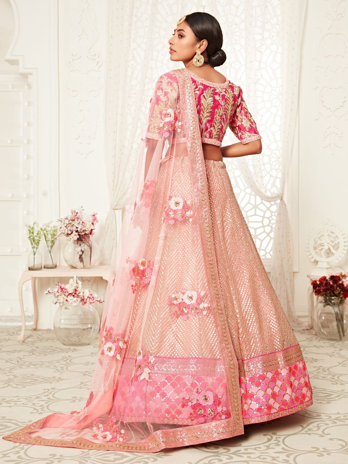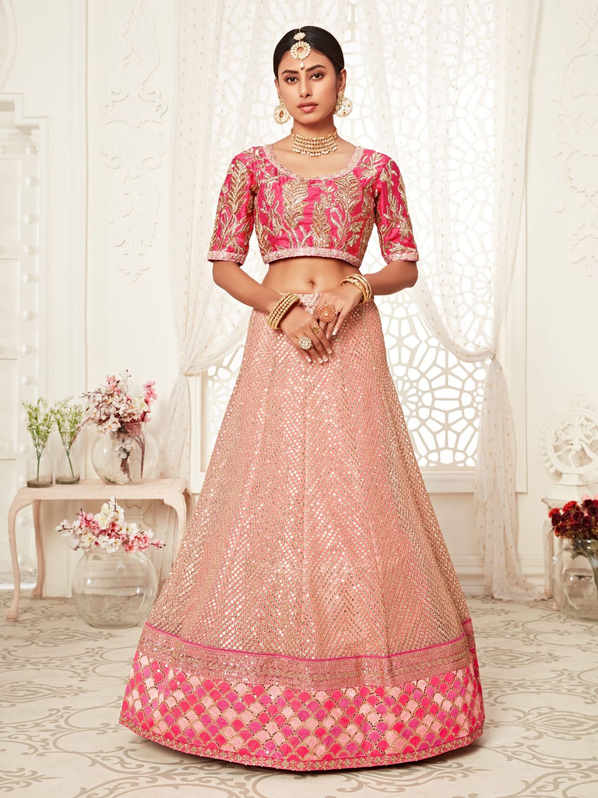 Re-Define Your Style In The Beautifully Zari, Sequins And Embroidery Lehenga. Match It With A Clutch And A Pair Of Heeled Sandals And You Are Ready To Slay.