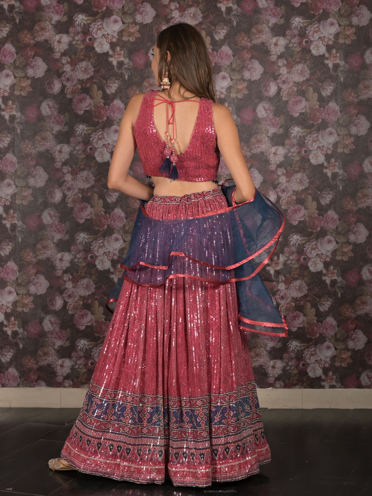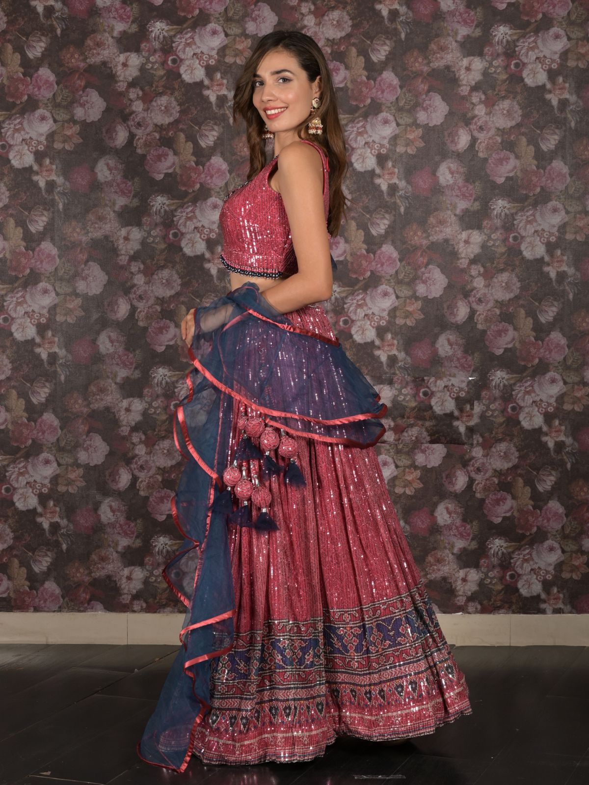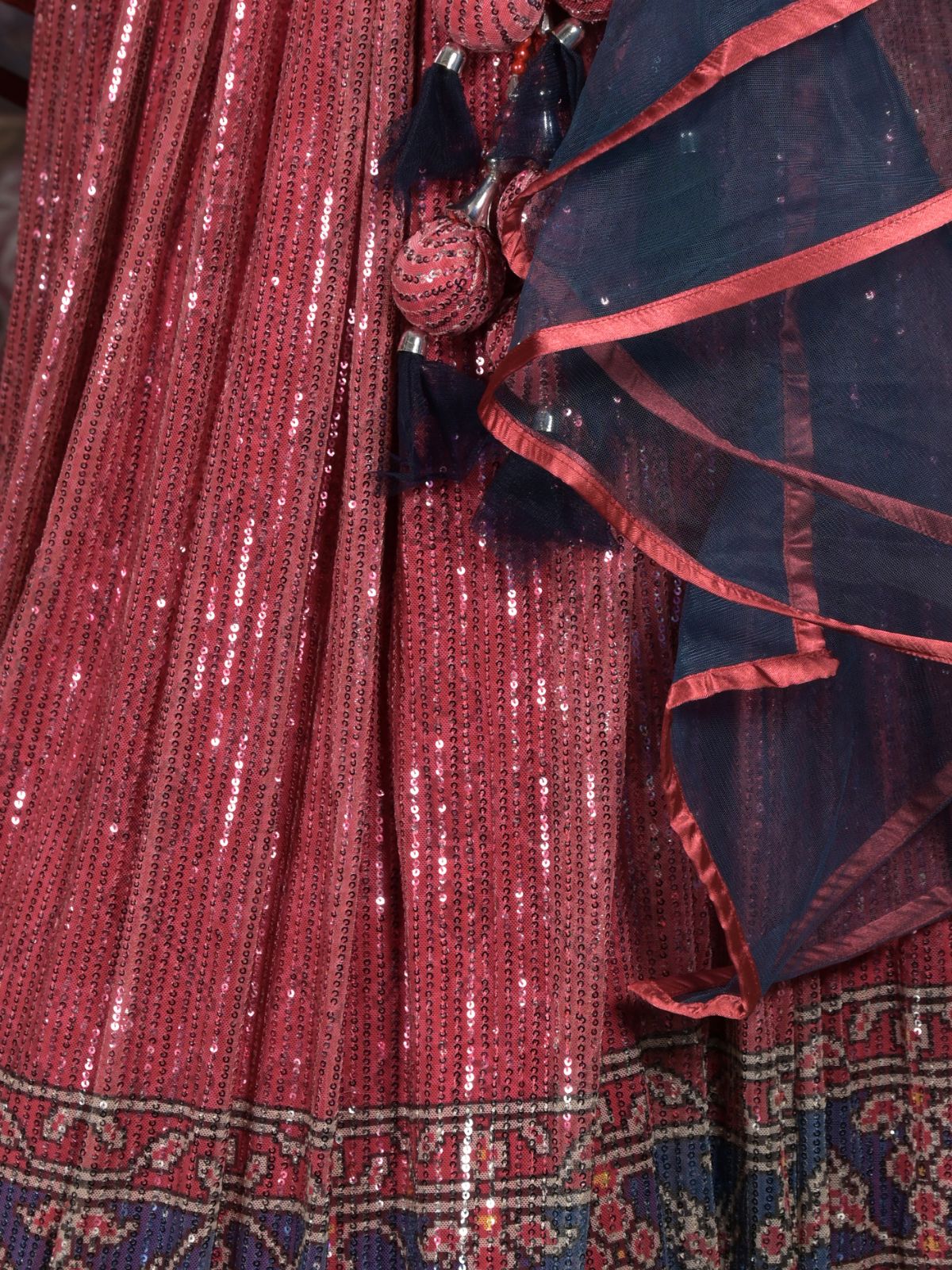 Rajwada Magenta Sequins Embroidered Stitched Net Lehenga With Stitched Blouse For Women