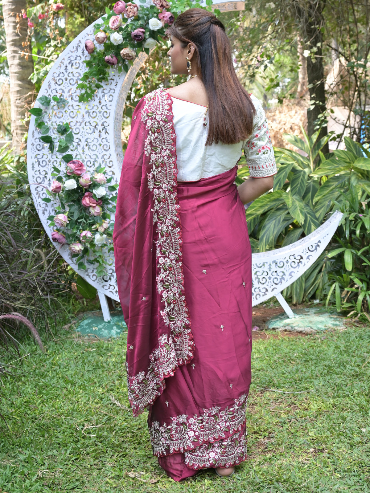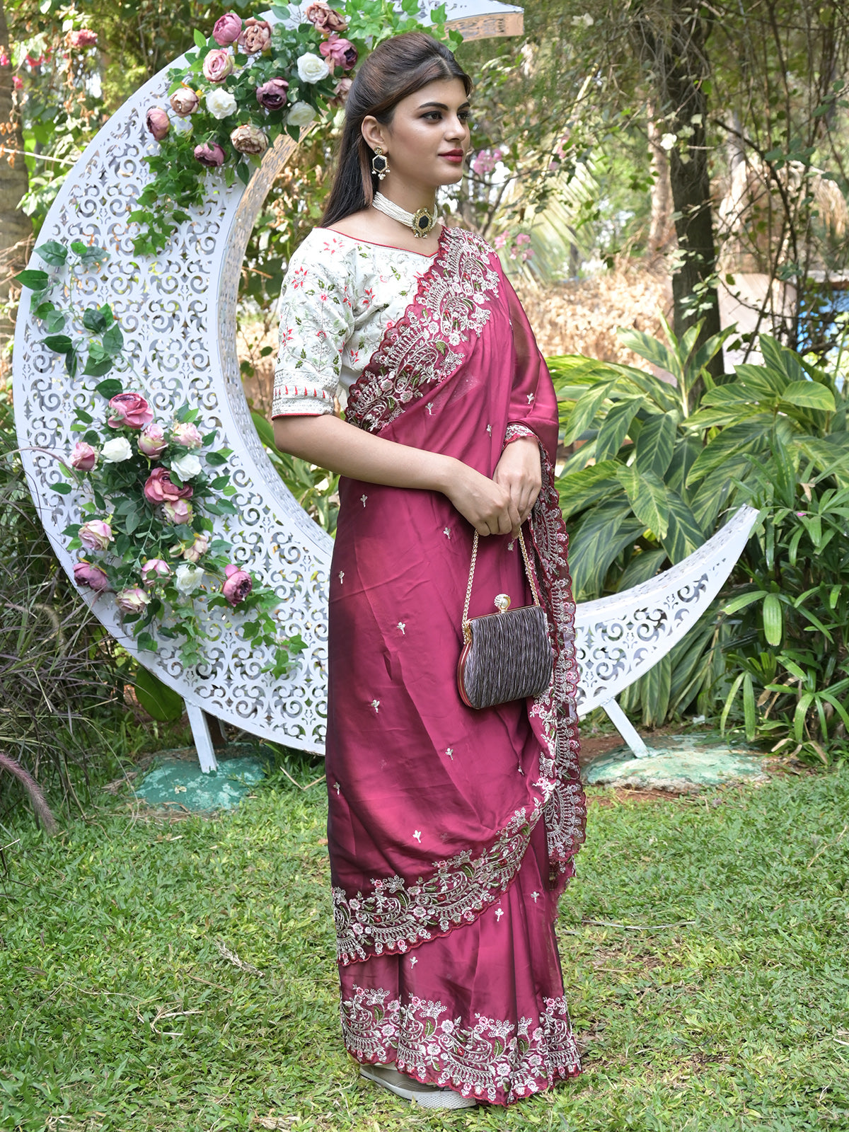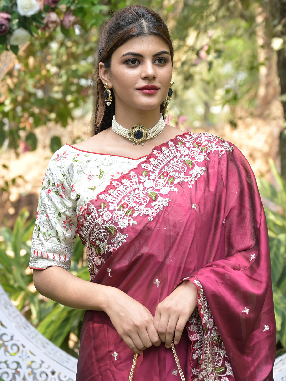 Gift yourself this lovely saree and be the cynosure wherever you go! Style this with a classy clutch and heels and you're good to go!