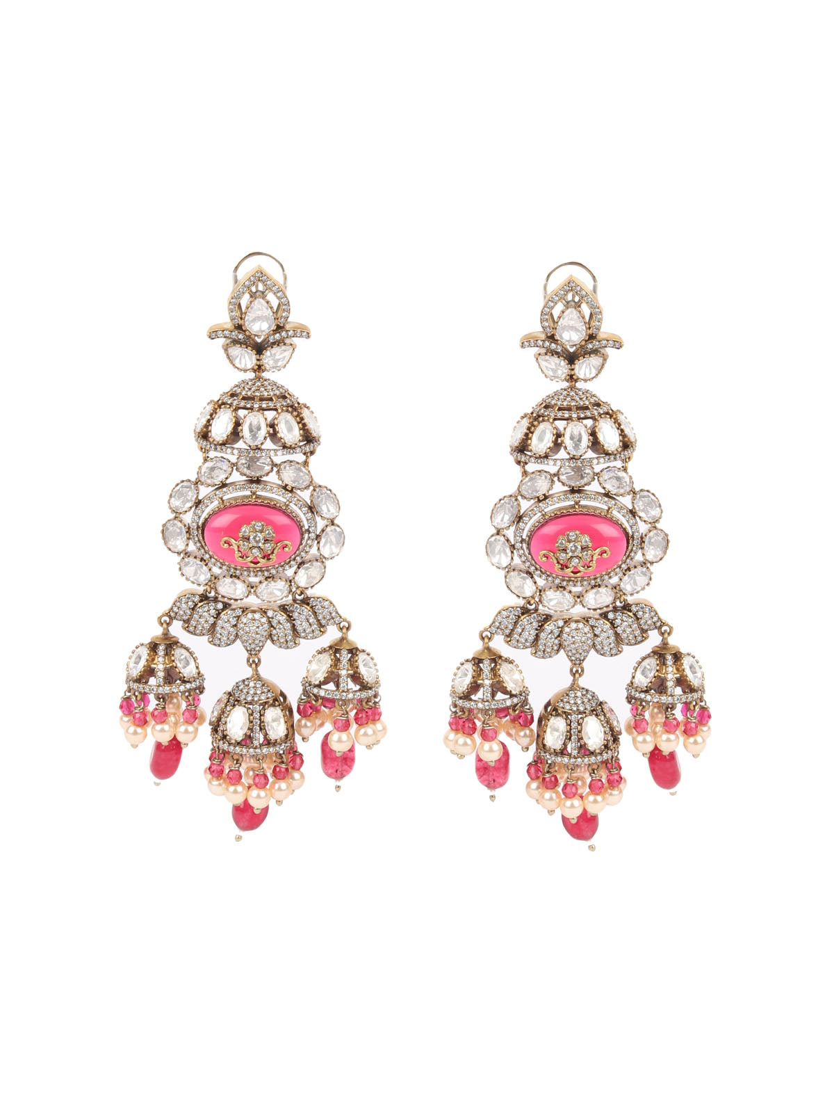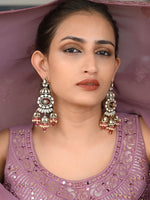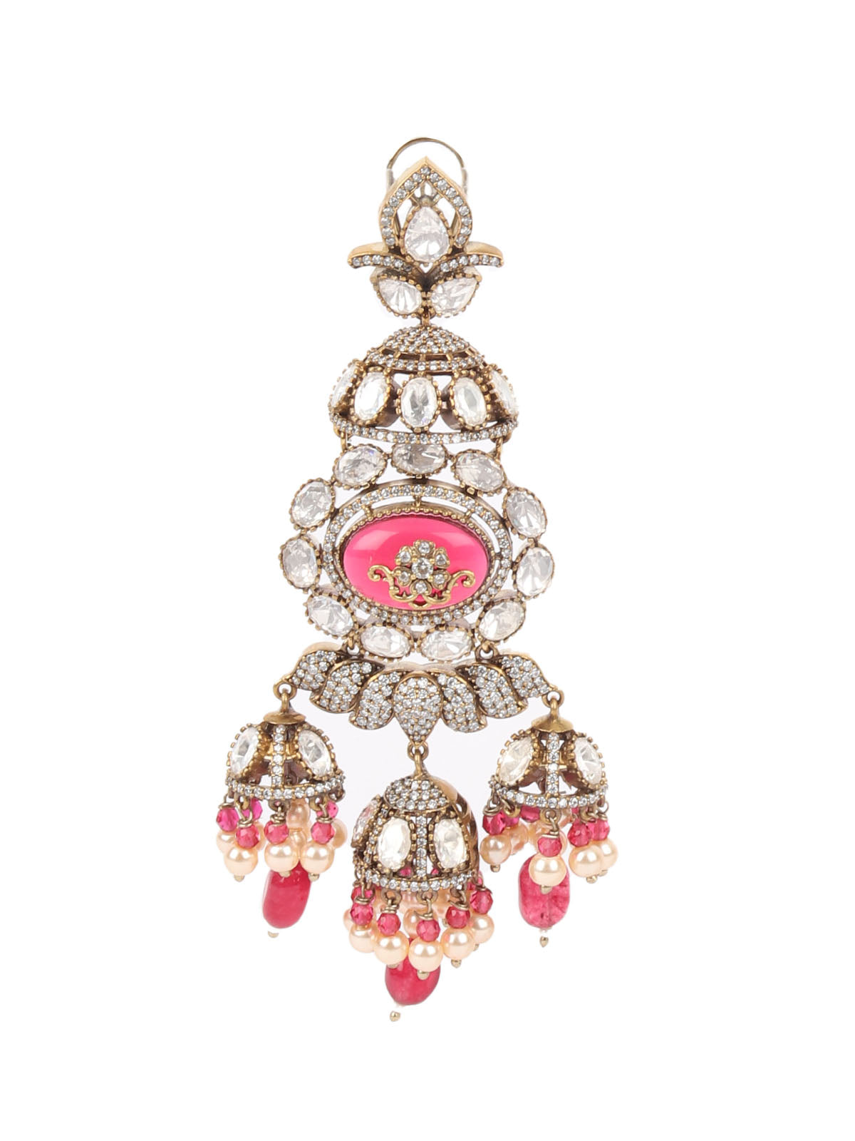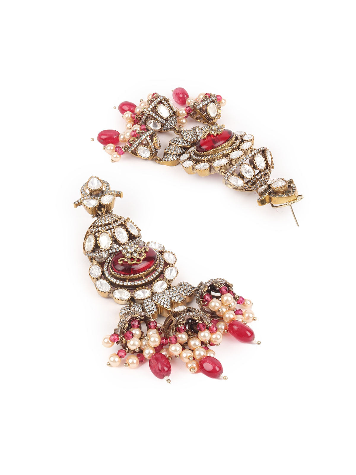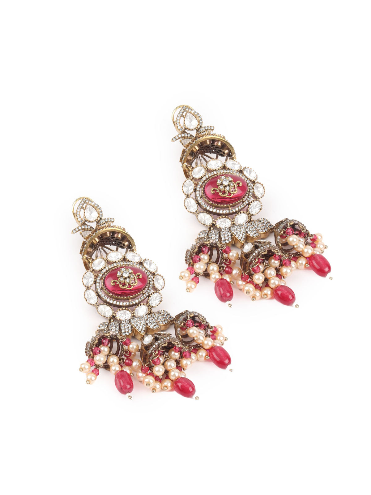 Gold-Toned & Maroon Contemporary Drop Earrings, Has Artificial Stones And Beads With Zircon Stone.