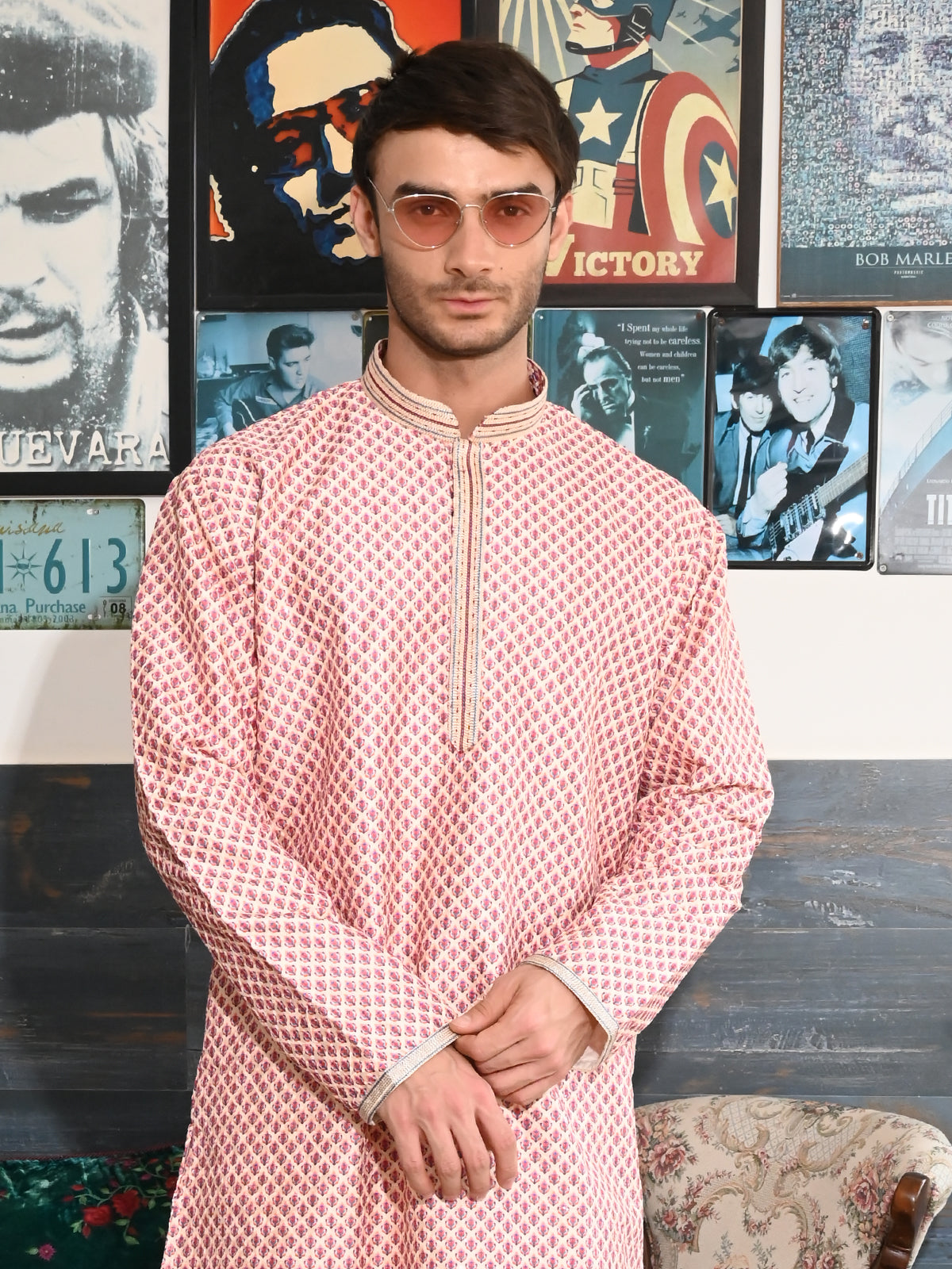 Embrace timeless elegance with this traditional men's kurta set. Crafted with premium fabrics and intricate detailing, it exudes sophistication. Ideal for cultural celebrations or casual events, offering comfort and style in equal measure.