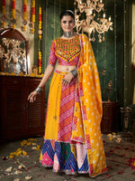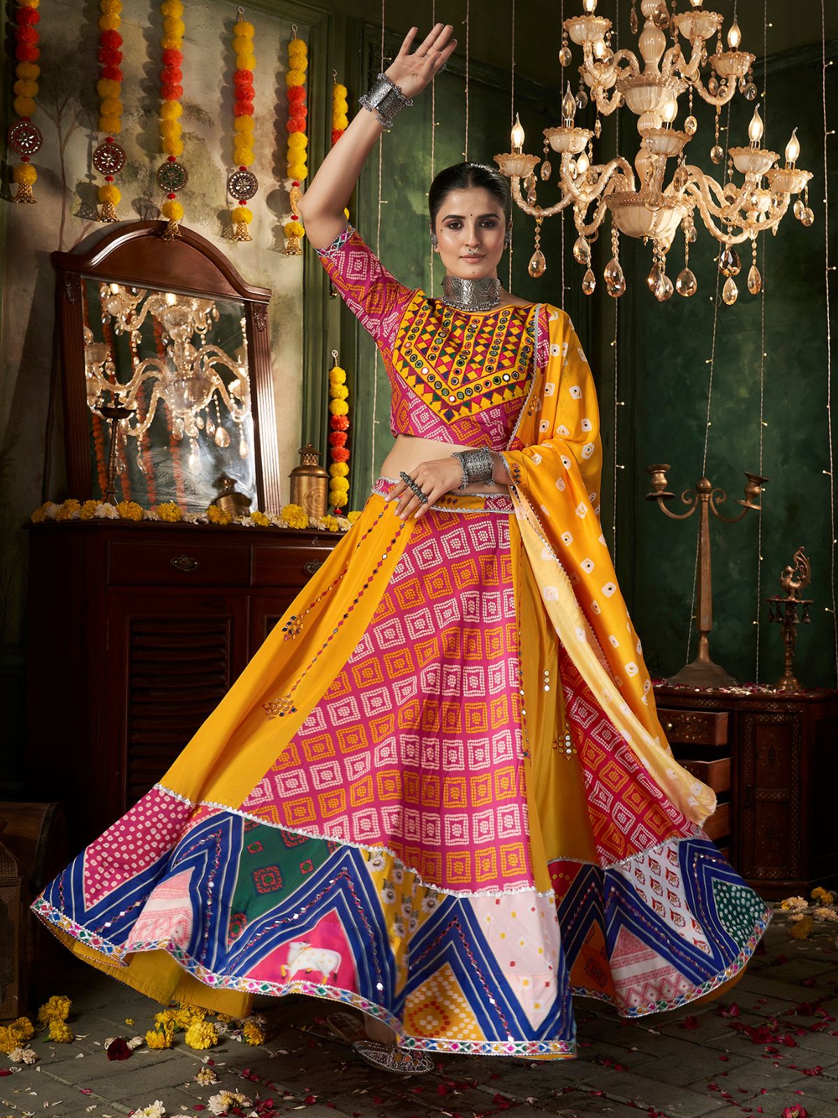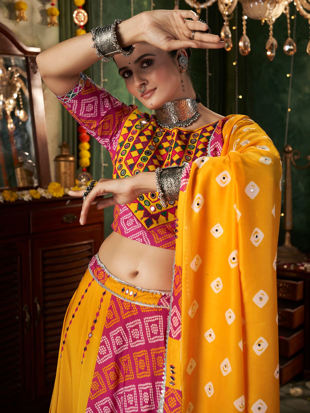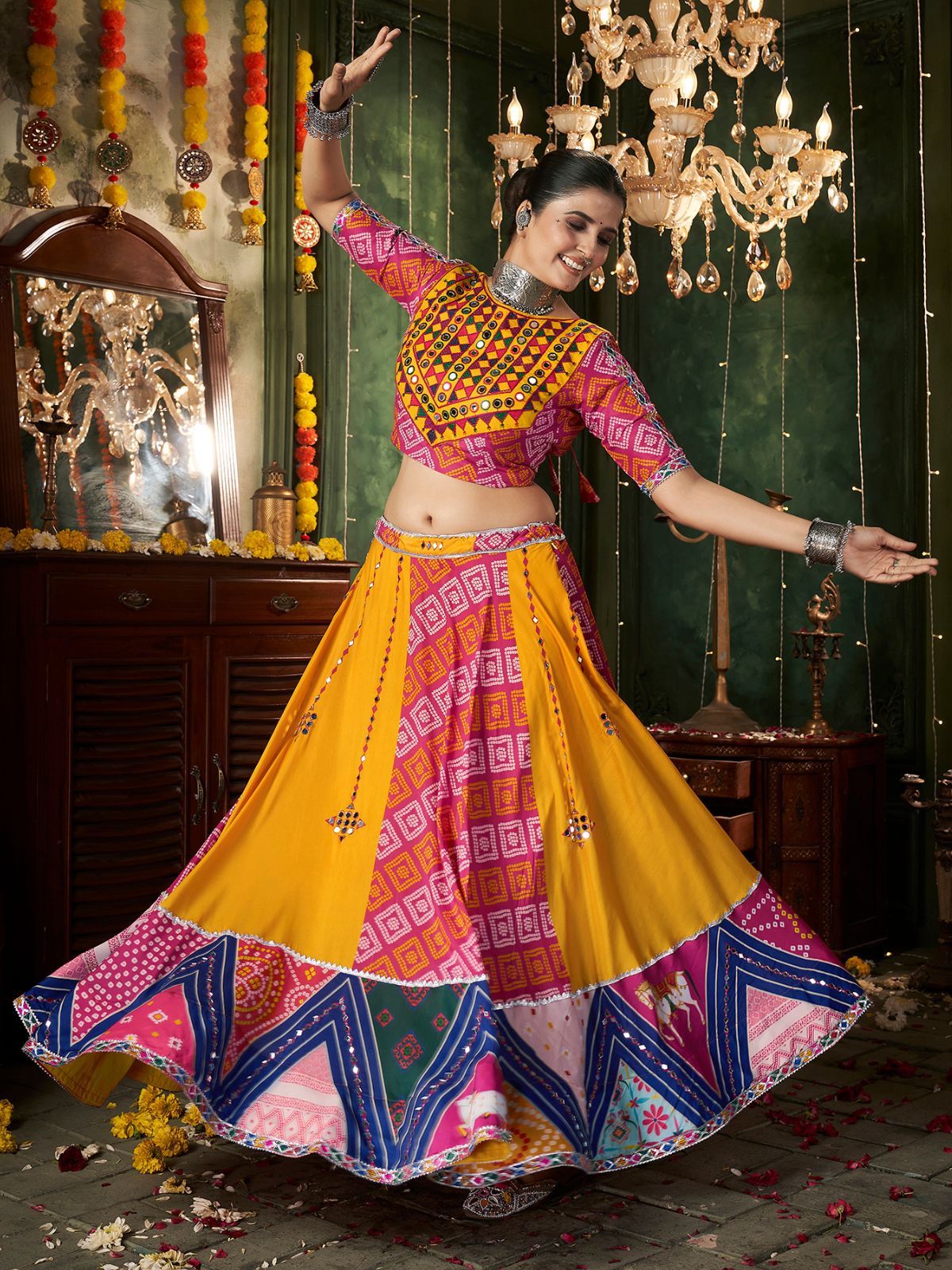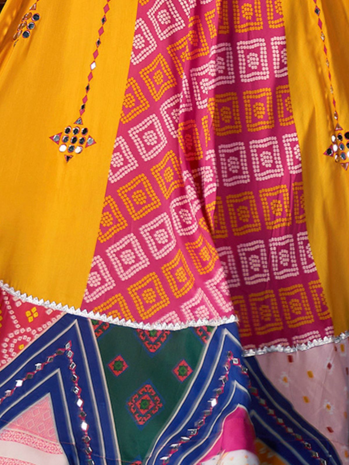 Re-define your style in the beautifully Printed, Mirror Work Lehenga. Match it with a clutch and a pair of heeled sandals and you are ready to slay.