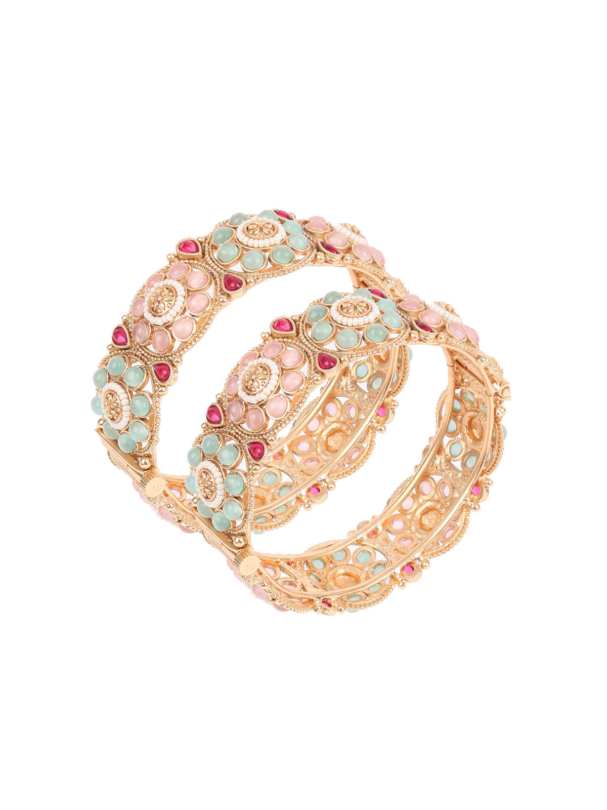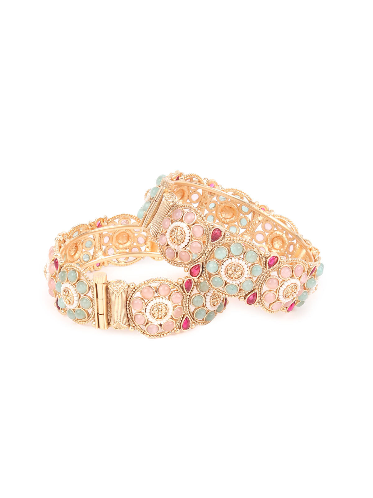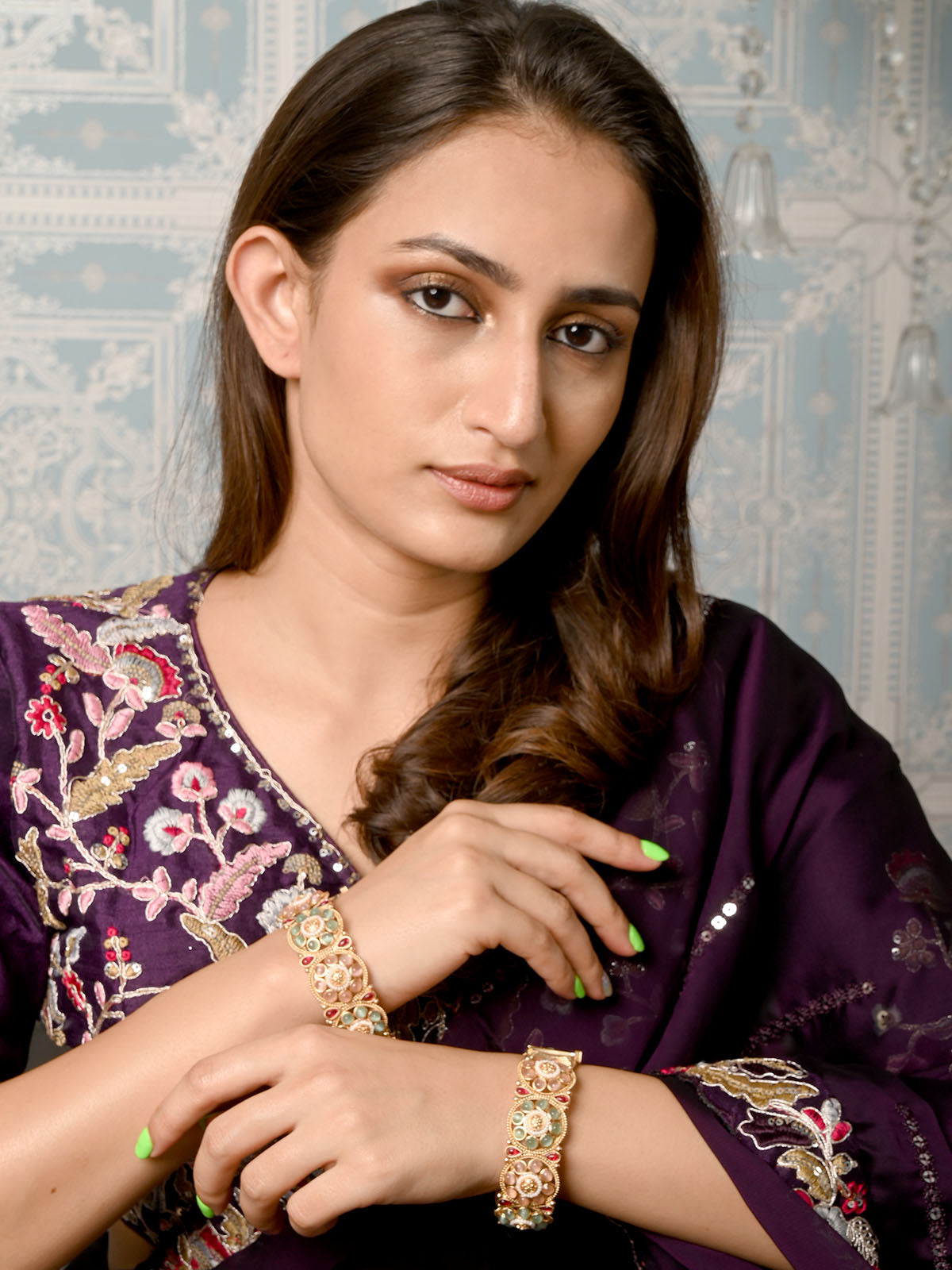 The multicolored bangles are a set of broad bangles that can accentuate other bangles in a set or can shine standing alone. Which ever way you decide to wear it, make sure you team it with our gorgeous necklace sets.