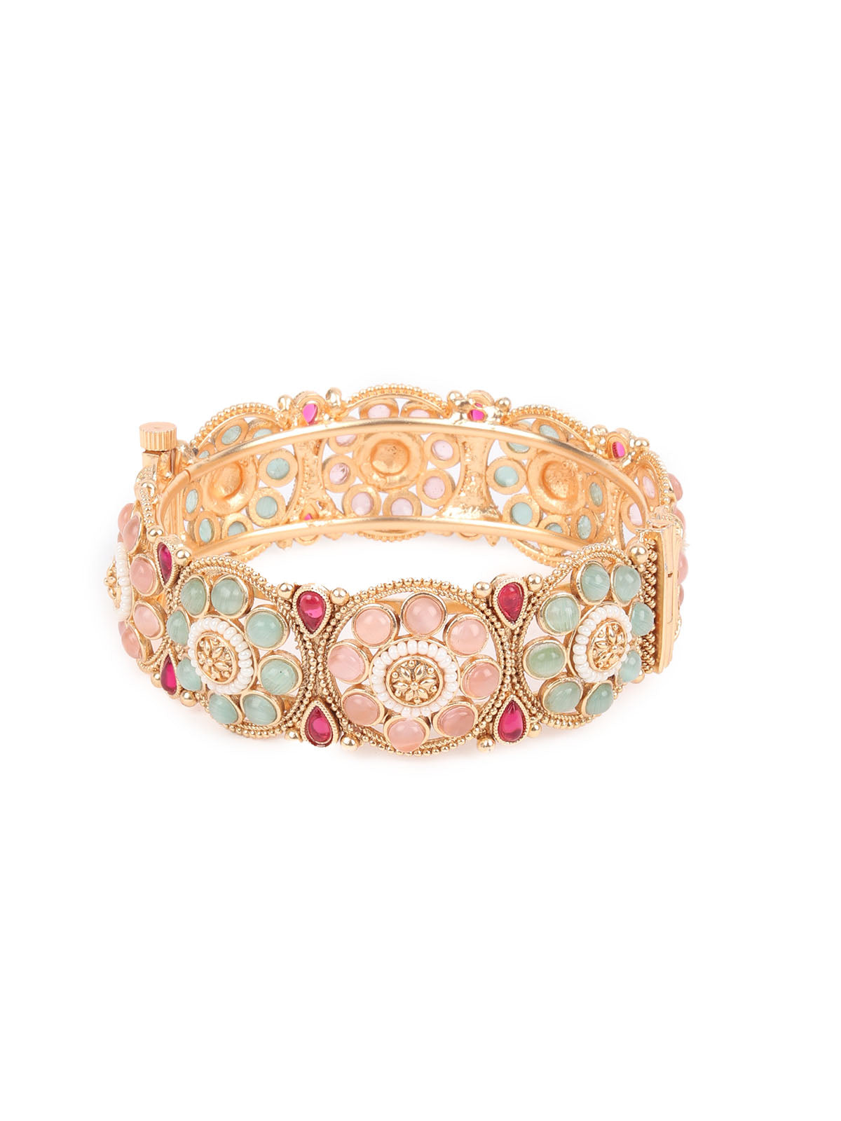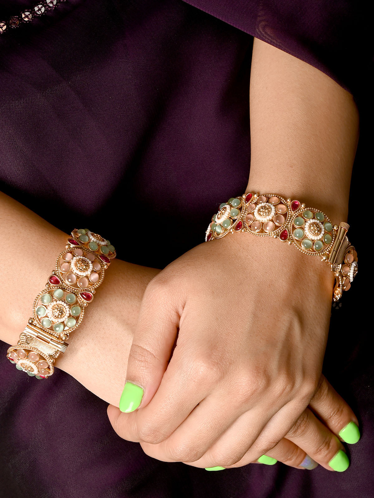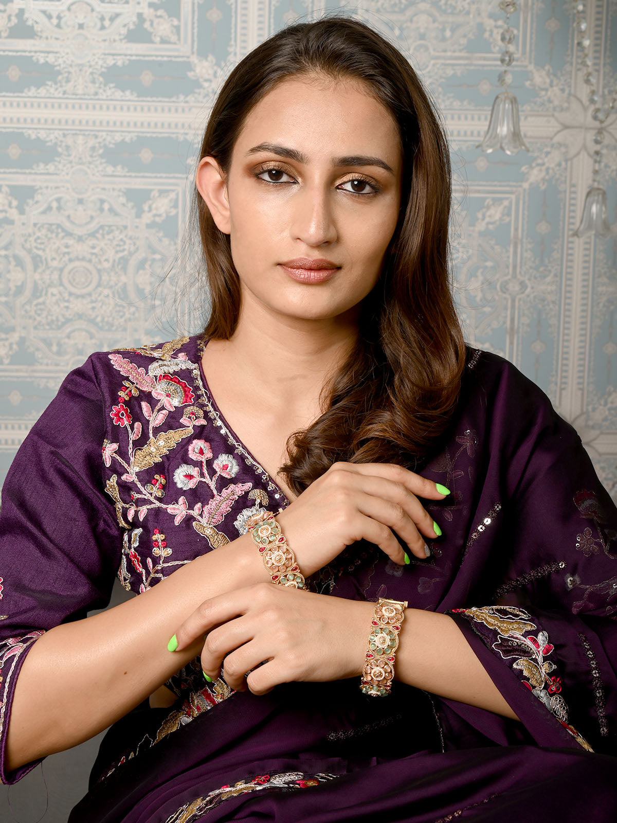 The multicolored bangles are a set of broad bangles that can accentuate other bangles in a set or can shine standing alone. Which ever way you decide to wear it, make sure you team it with our gorgeous necklace sets.