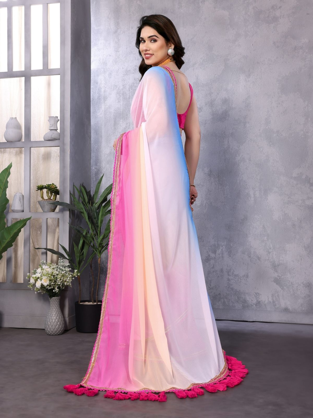 Rajwada Multicolor Georgette Lace Work Saree With Unstitched Blouse For Women