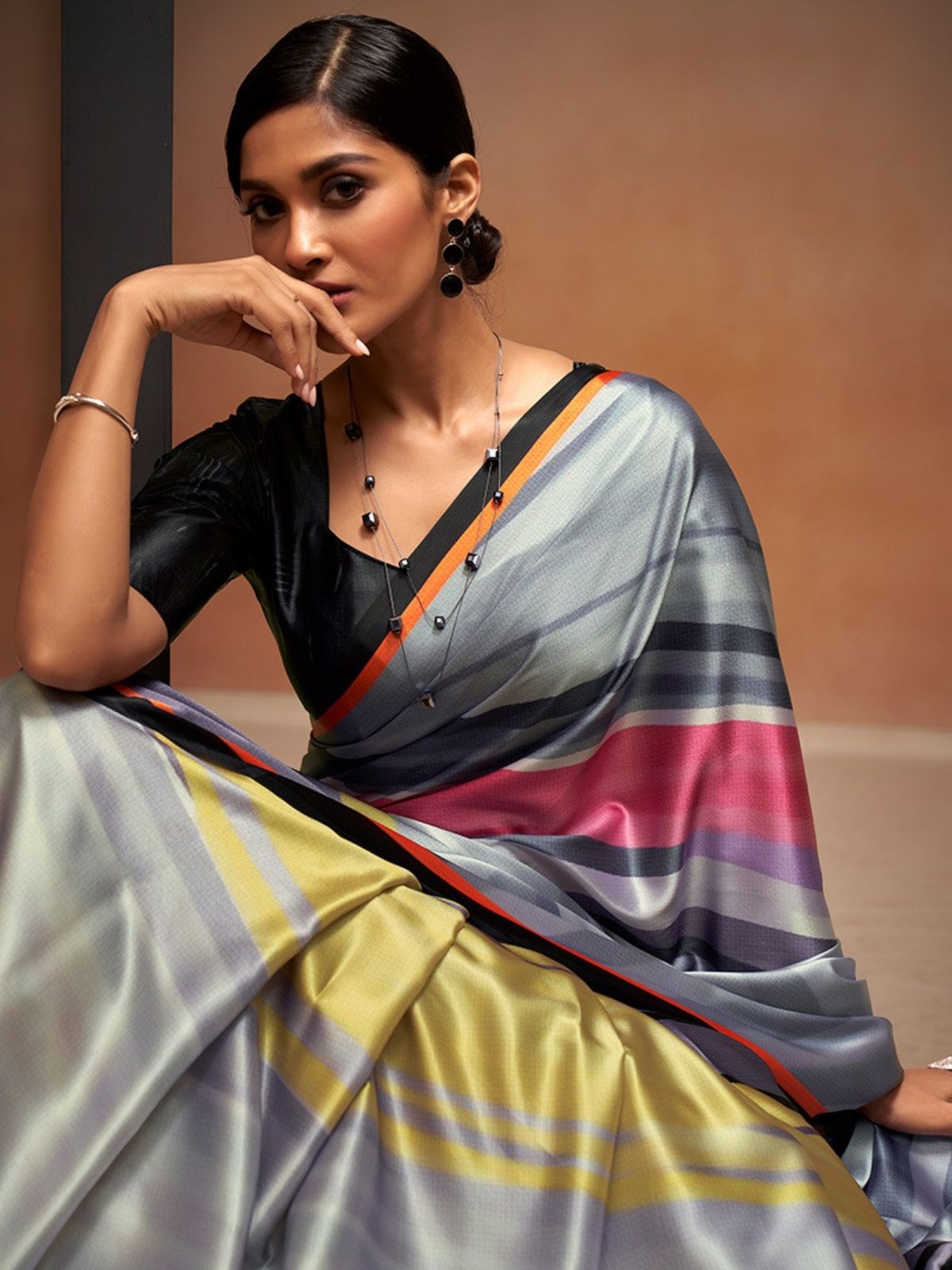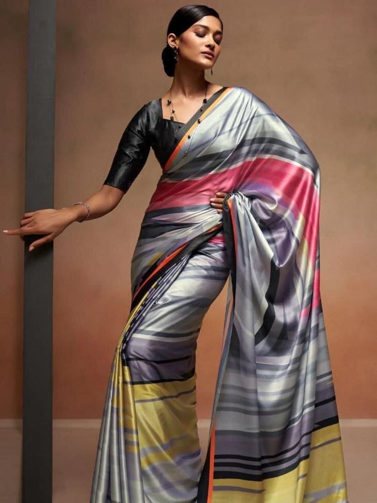 Re-Define Your Style In The Beautiful Printed Saree With A Printed Matching Blouse Pieces. Match It With A Clutch And A Pair Of Heeled Sandals And You Are Ready To Slay.