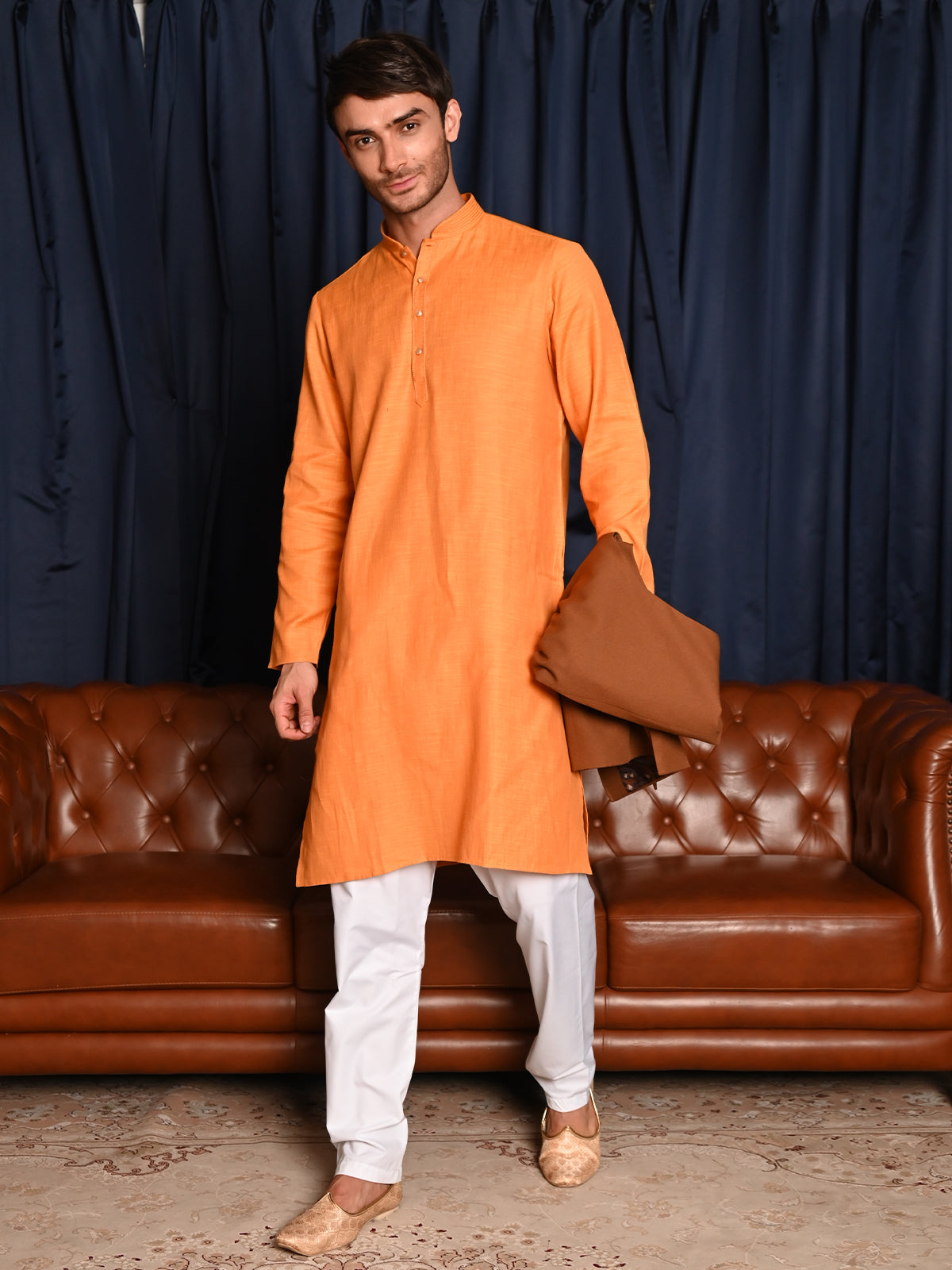 Embrace timeless elegance with this traditional men's kurta set. Crafted with premium fabrics and intricate detailing, it exudes sophistication. Ideal for cultural celebrations or casual events, offering comfort and style in equal measure.