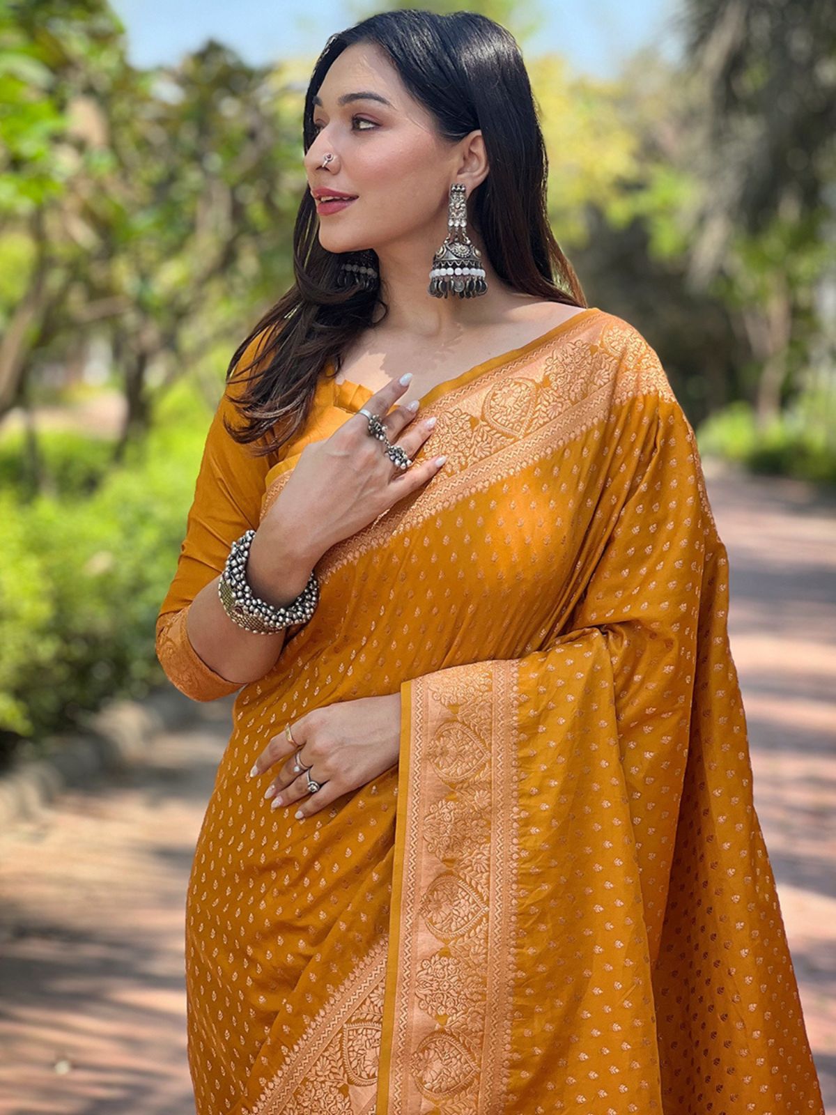 Re-Define Your Style In The Beautiful Woven Design Saree With A Matching Blouse Pieces. Match It With A Clutch And A Pair Of Heeled Sandals And You Are Ready To Slay.