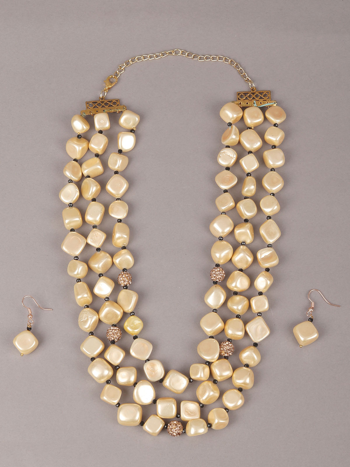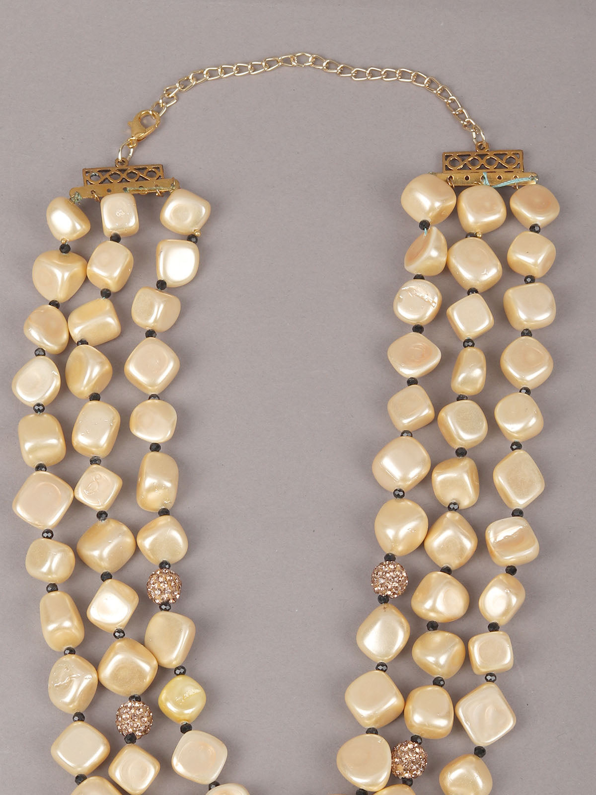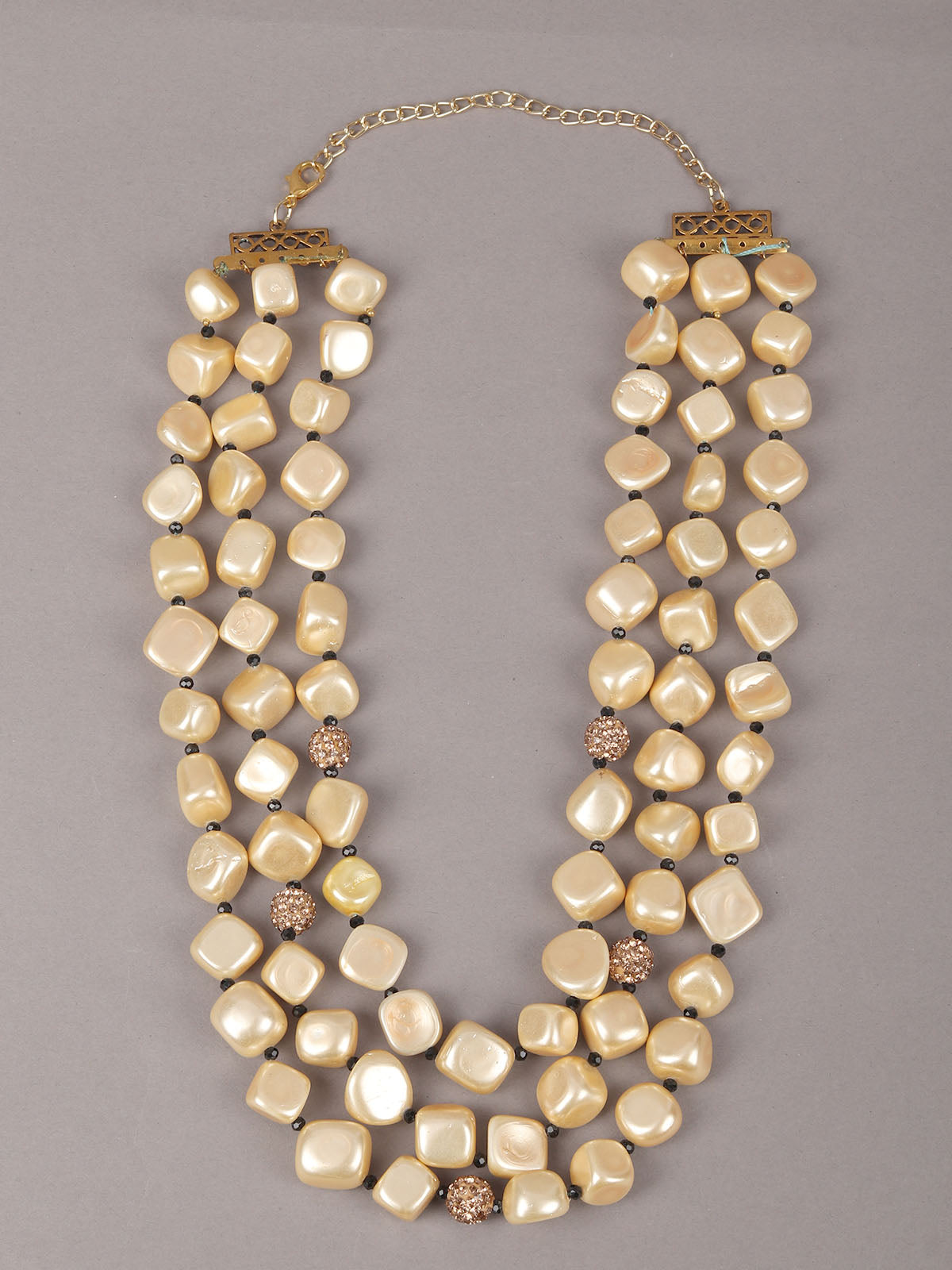 Multilayered White Faux Pearl Long Neckpiece With Beads. Good for festive and party wear.