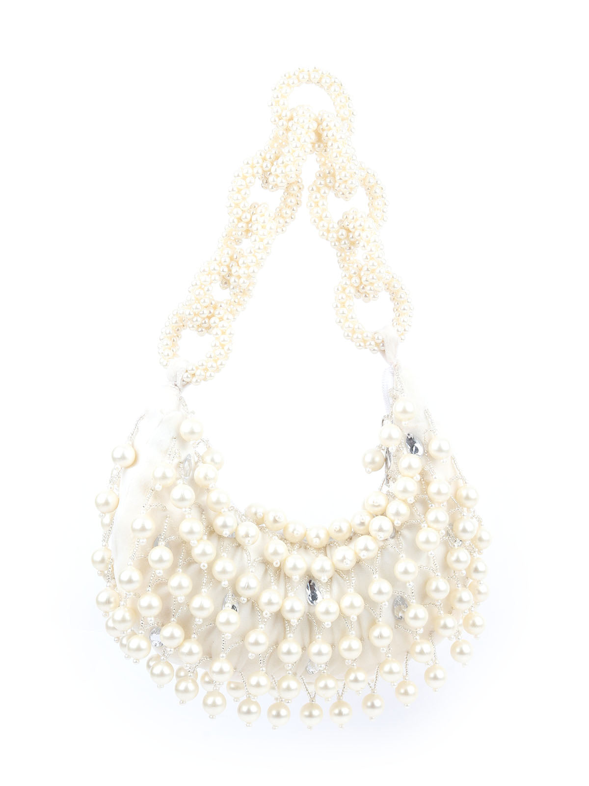 Rajwada Off White Suede Embellished Hand Bag For Women