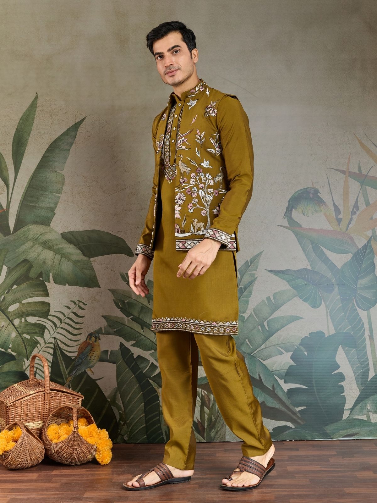 Embrace timeless elegance with this traditional men's kurta set. Crafted with premium fabrics and intricate detailing, it exudes sophistication. Ideal for cultural celebrations or casual events, offering comfort and style in equal measure.