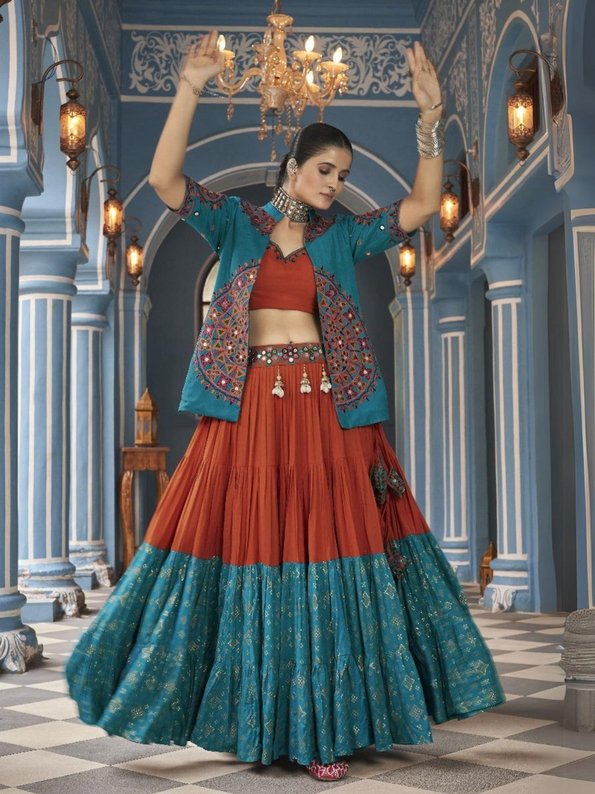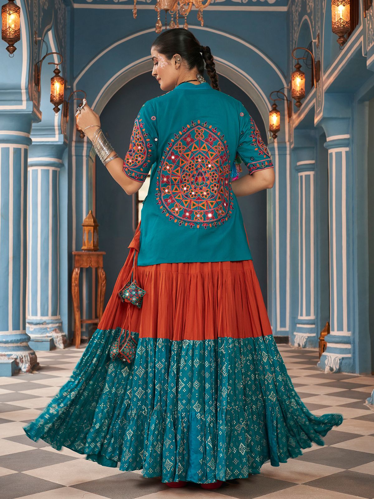 - Lehenga Color: Orange And Blue
