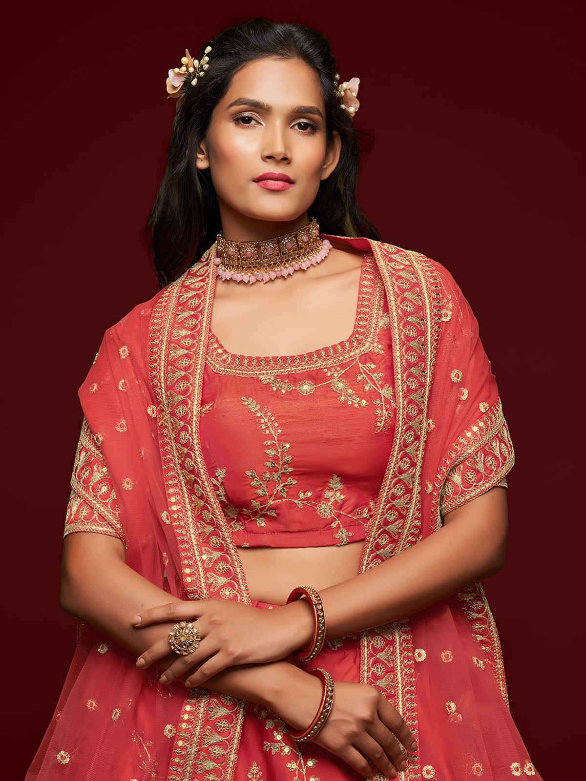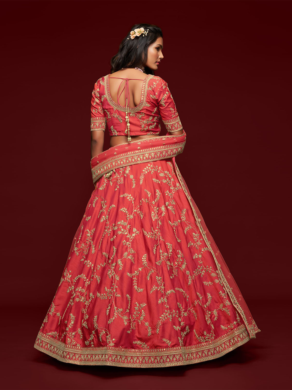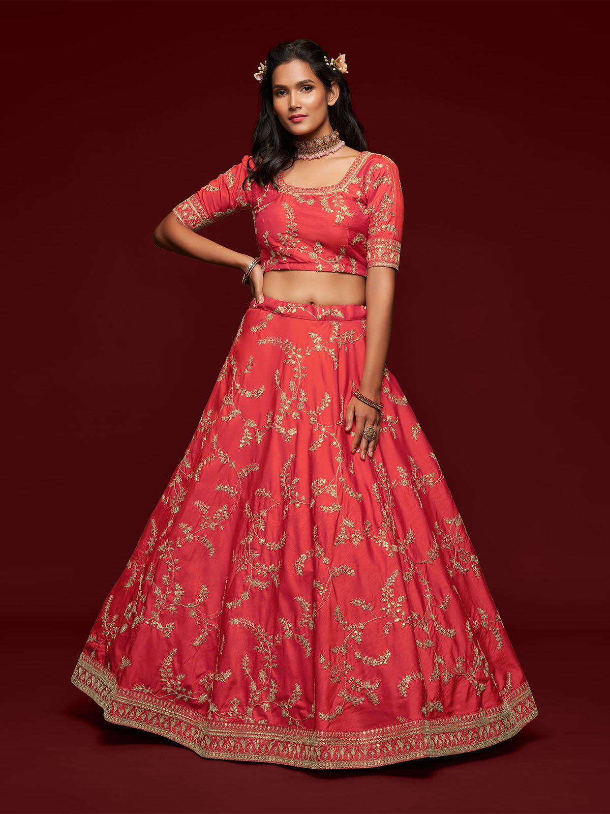 - Lehenga Work: Thread, Zari, Sequins And Embroidery