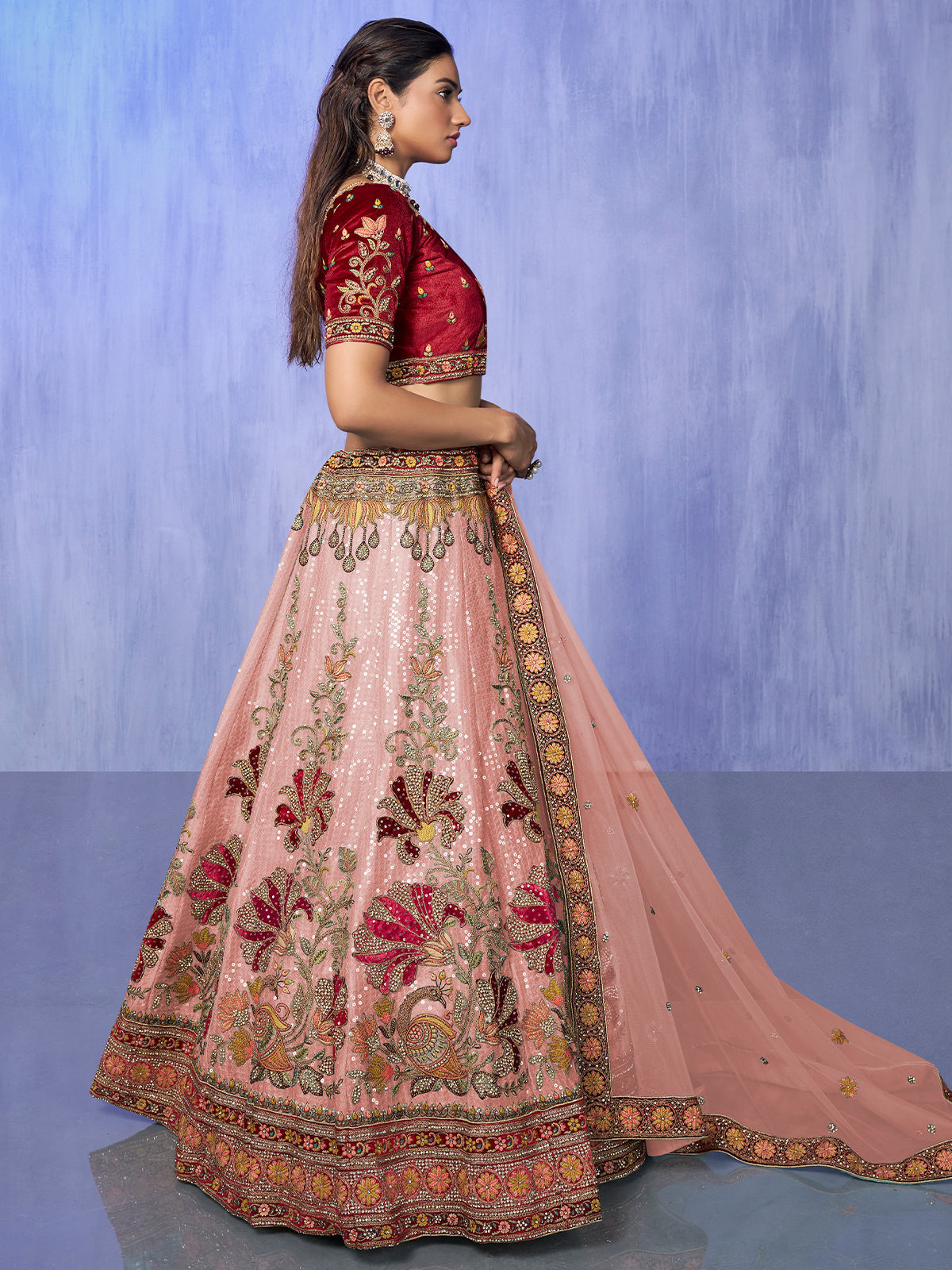 - Lehenga Color: Peach