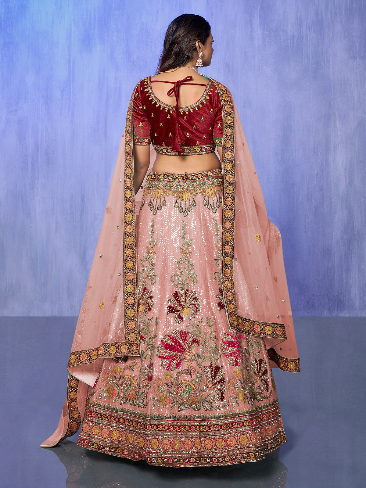 - Lehenga work: Sequins and Thread Embroidery