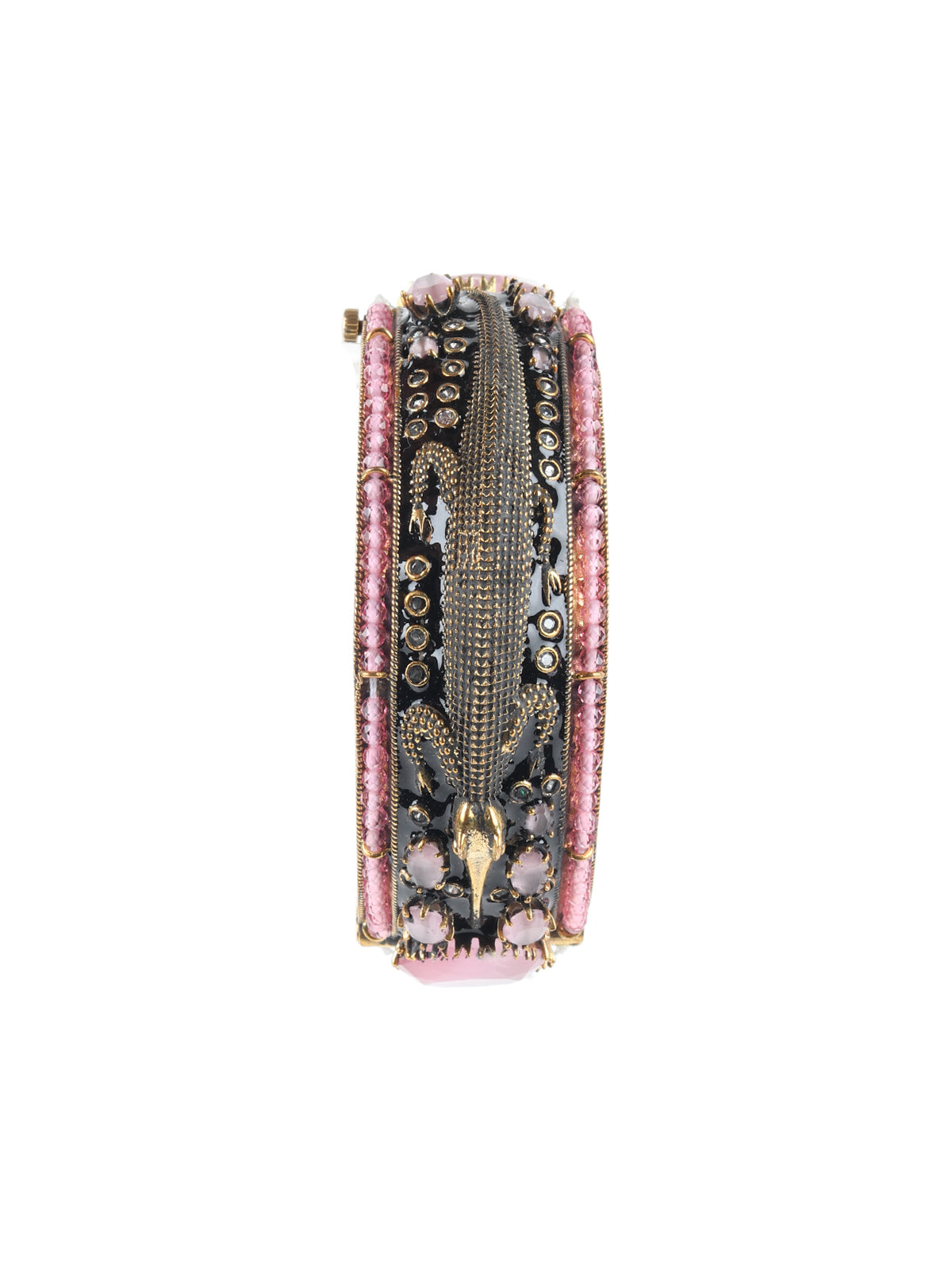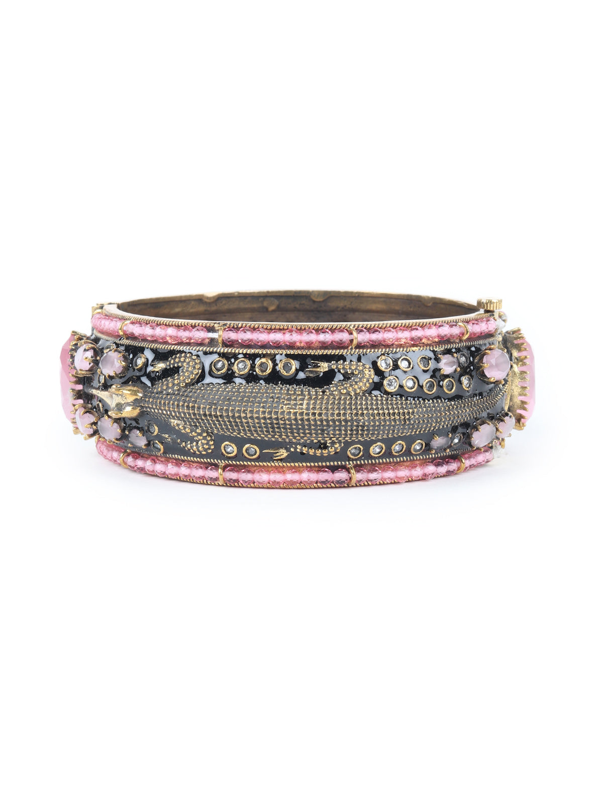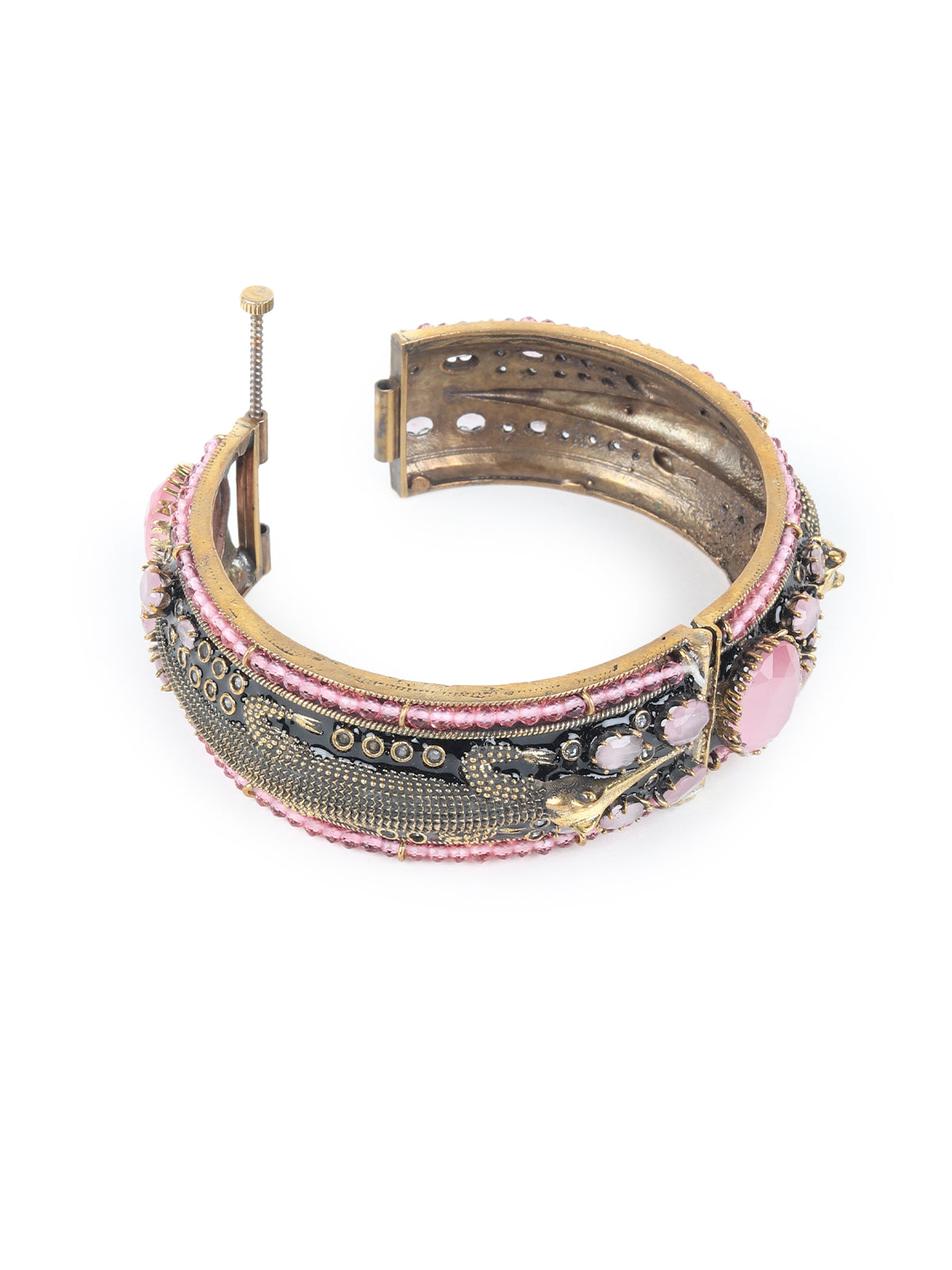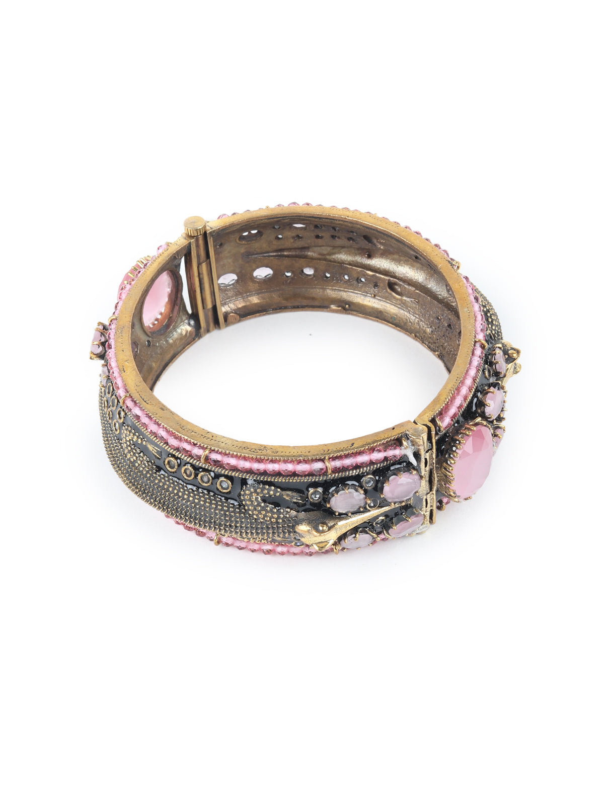 Add a touch of glamour to your wrist with Rajwada's Pink and Gold Faux Stone Embellished Bracelet for Women. Elevate your style effortlessly. Shop now and sparkle with sophistication
