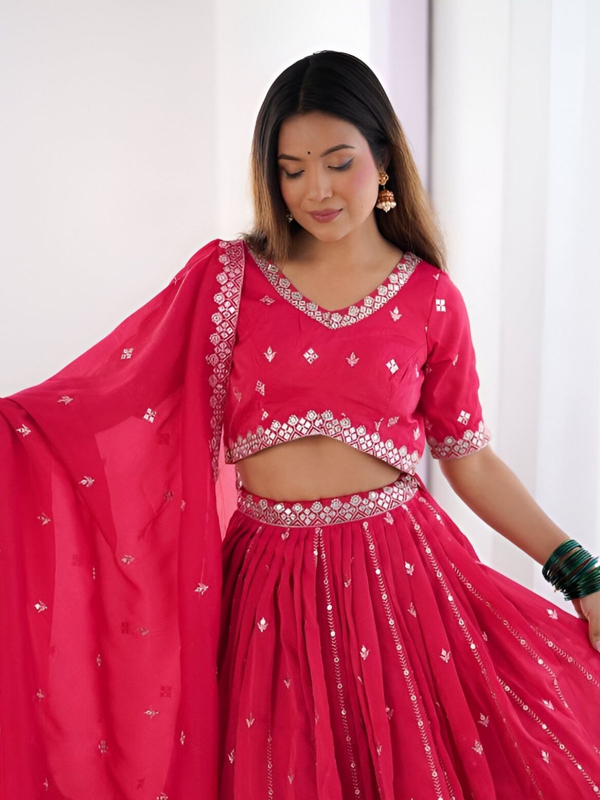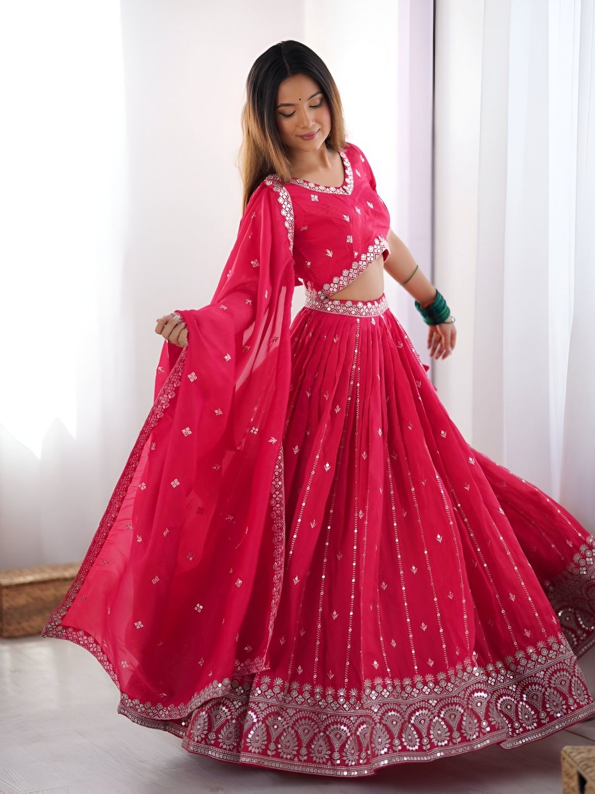 This Lehenga Choli Blends Tradition And Glamour With Delicate Embroidery And A Flattering Silhouette, Grace In Every Thread. And Shine Bright In This Beautiful Lehenga Choli, Perfect For Weddings And Special Occasions.