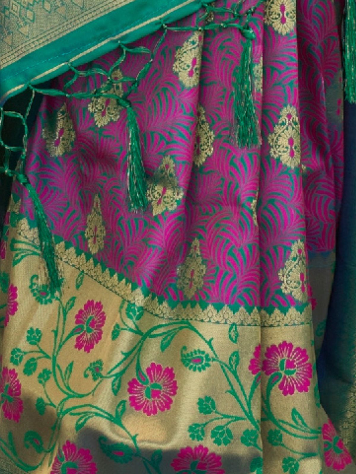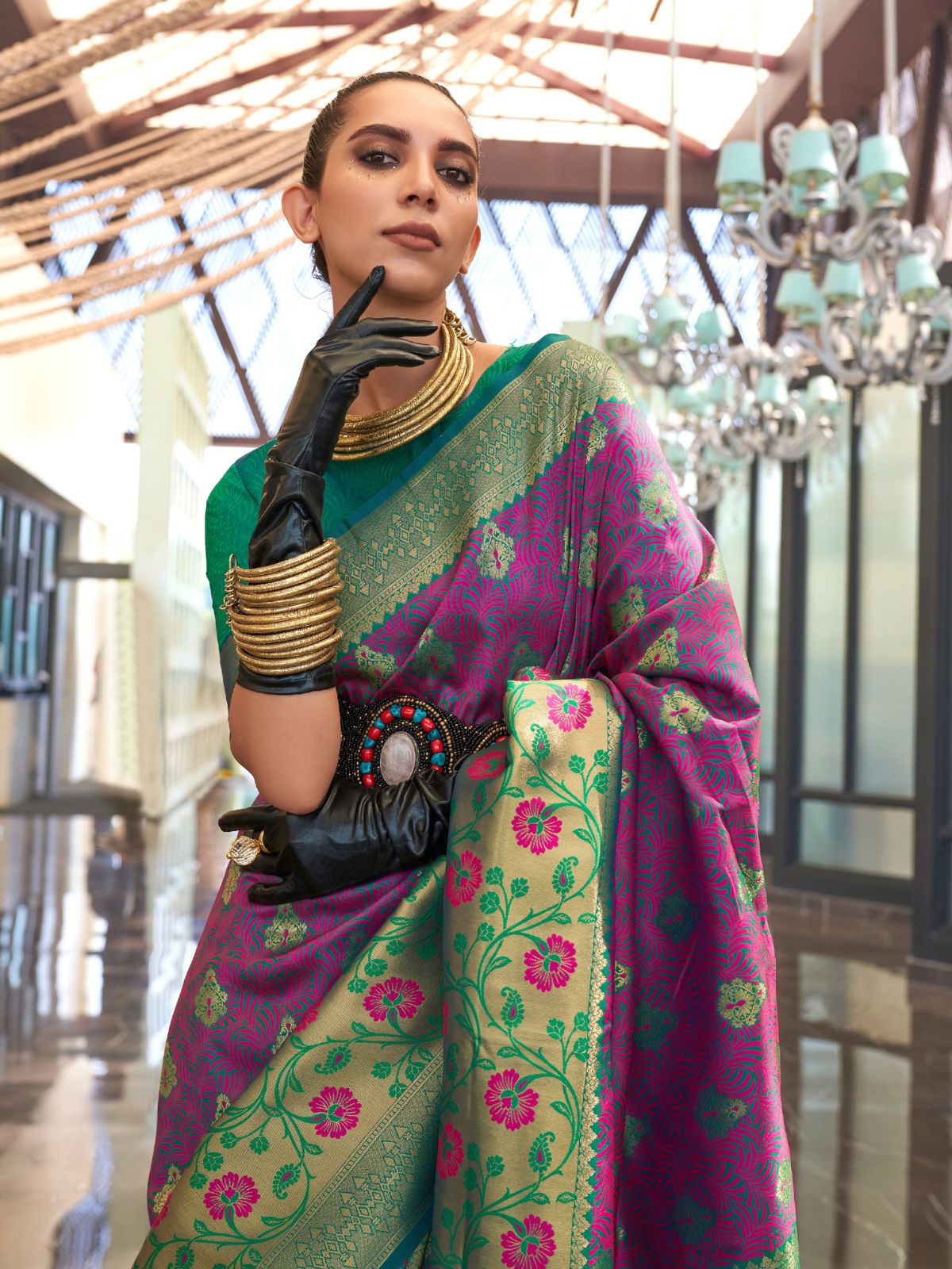 Rajwada Pink Silk Blend Woven Saree With Unstitched Blouse for Women
