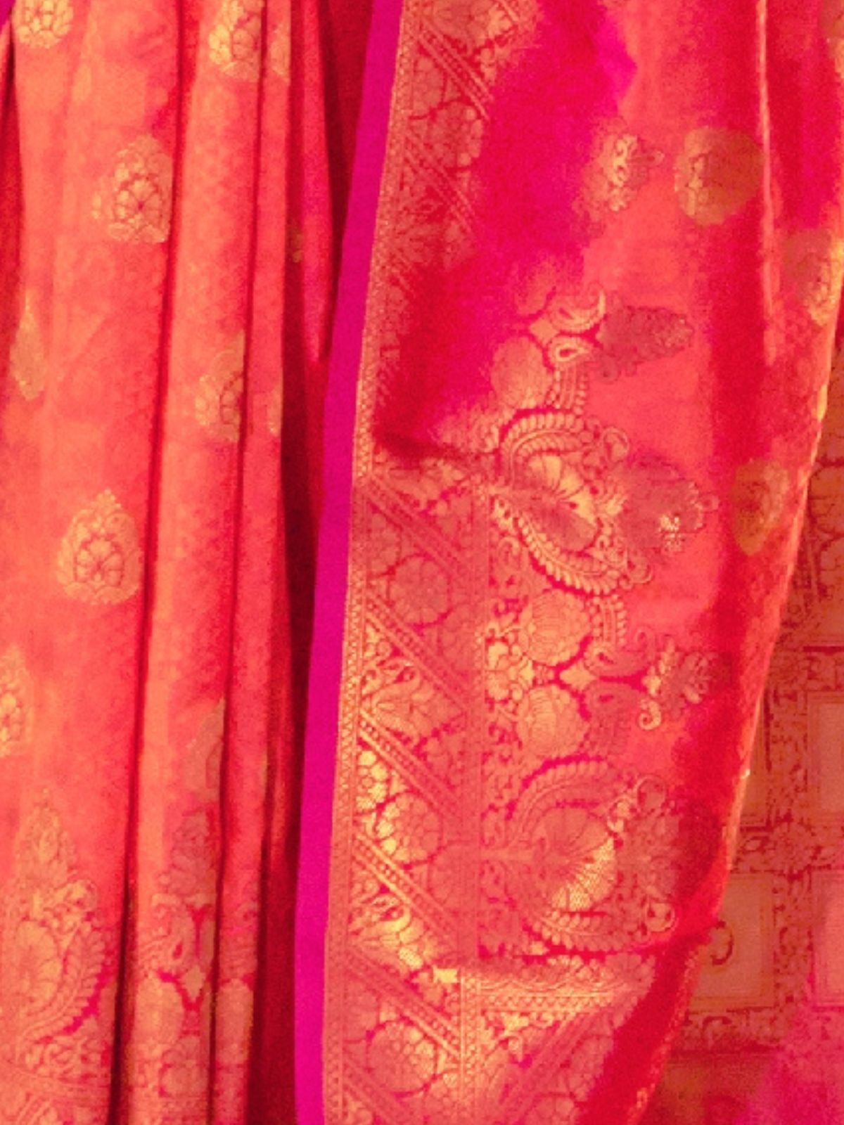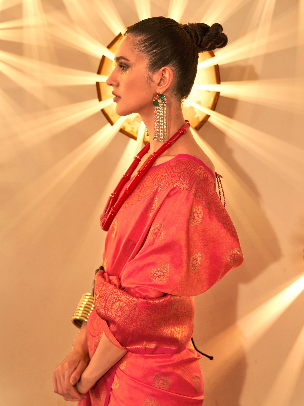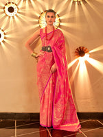 Rajwada Pink Silk Blend Woven Saree With Unstitched Blouse For Women