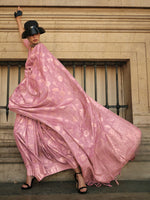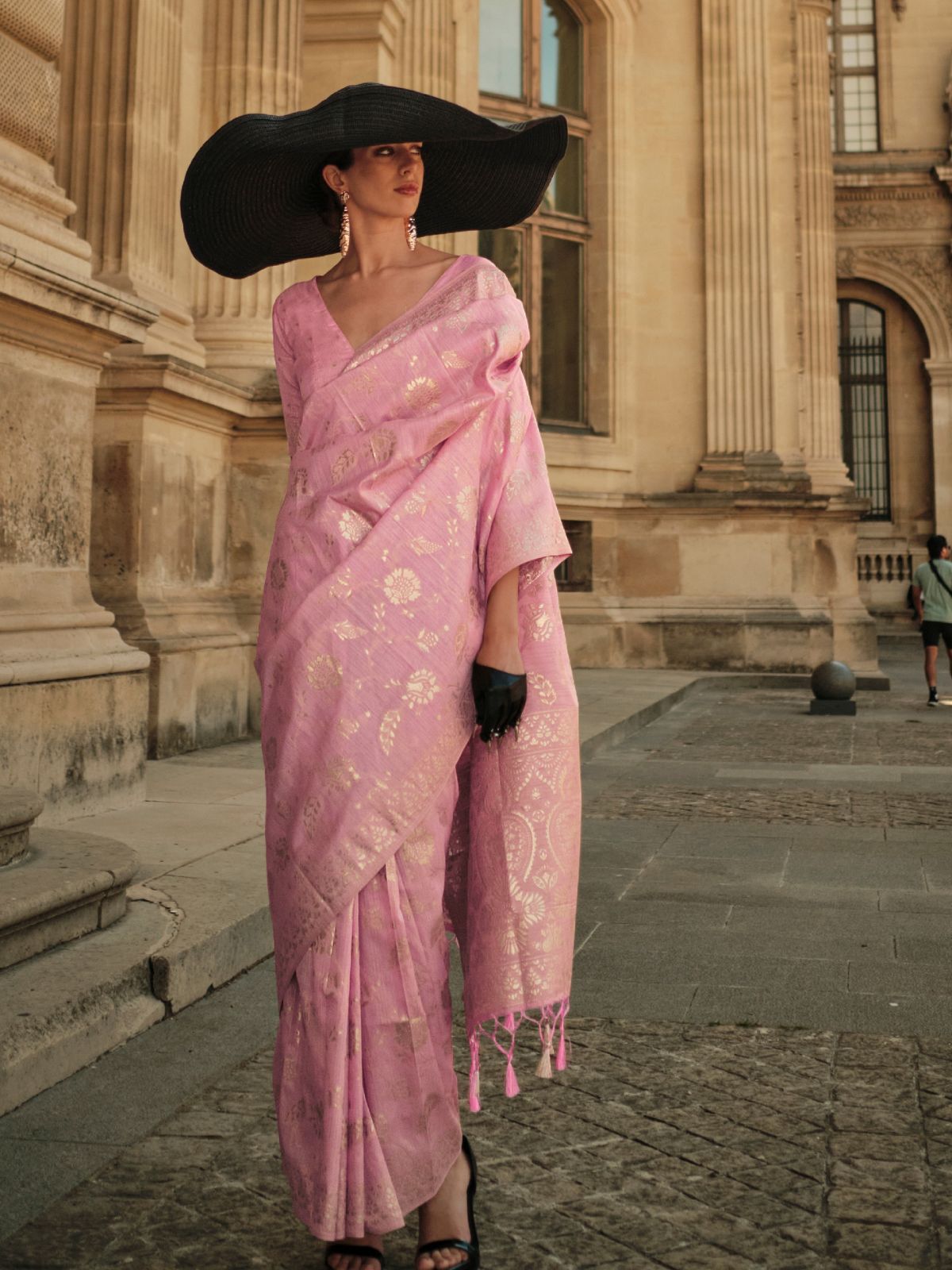 Rajwada Pink Silk Blend Woven Saree With Unstitched Blouse For Women