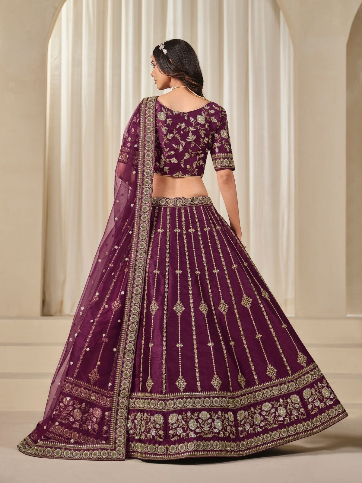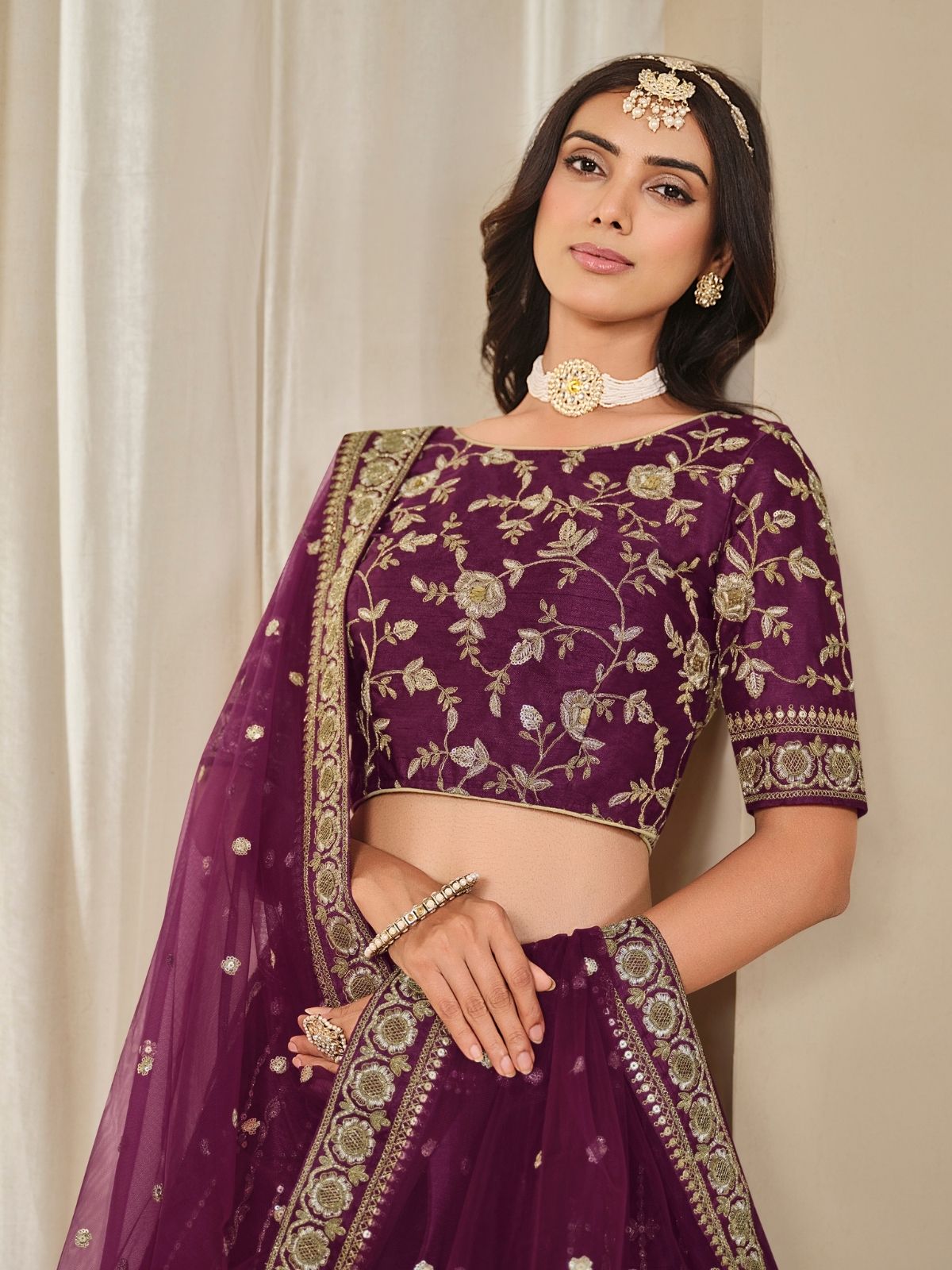 Rajwada Purple Art Silk Embroidered Semi-Stitched lehenga For Women