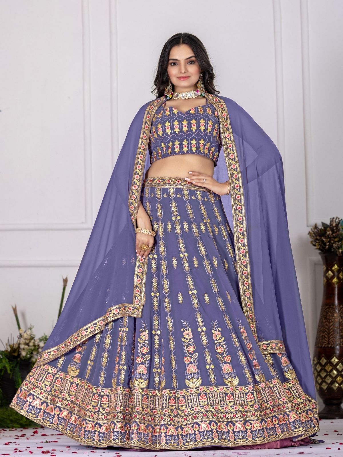 This Lehenga Choli Blends Tradition And Glamour With Delicate Embroidery And A Flattering Silhouette, Grace In Every Thread. And Shine Bright In This Beautiful Lehenga Choli, Perfect For Weddings And Special Occasions.
