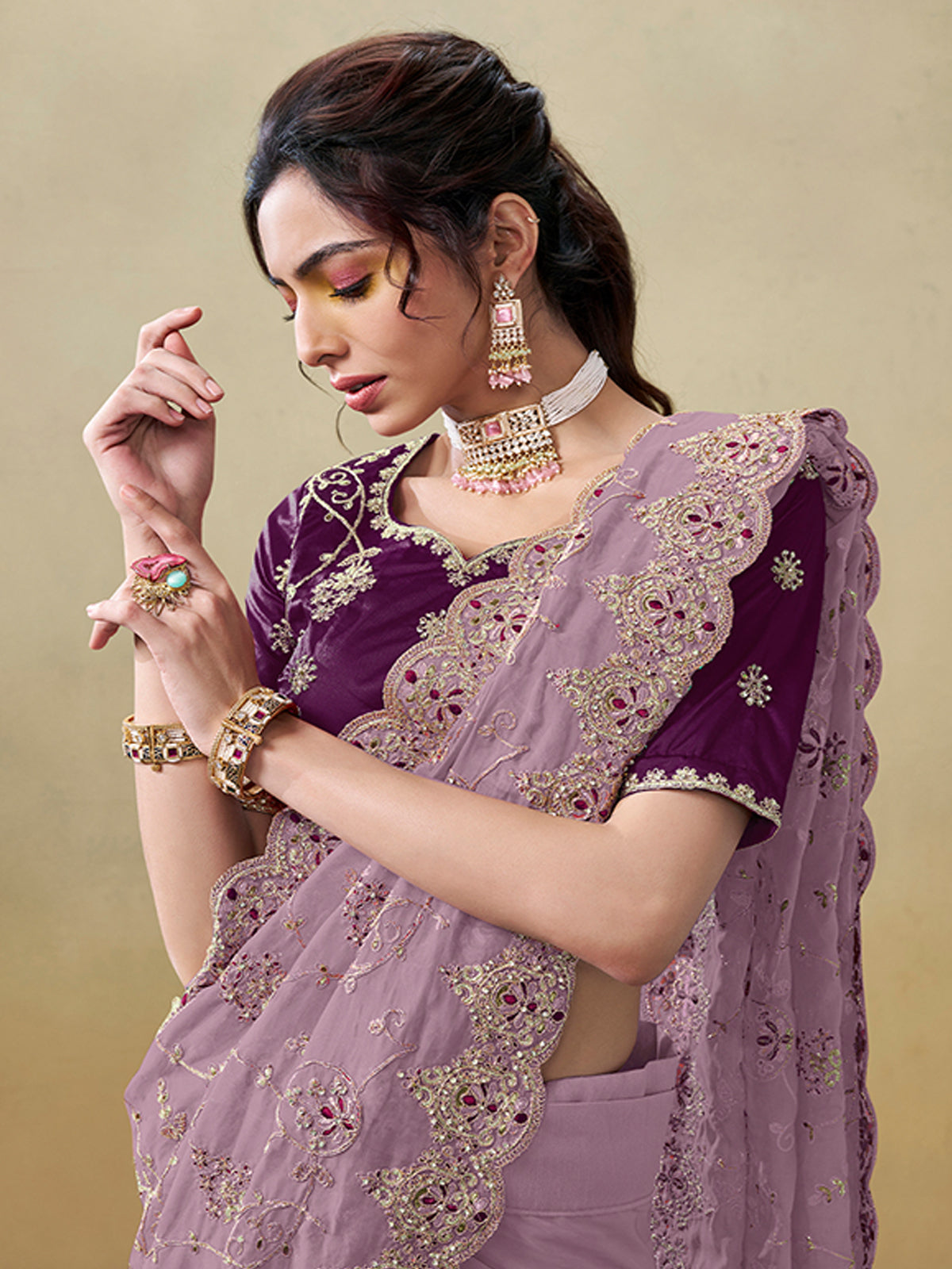 Gift yourself this lovely saree and be the cynosure wherever you go! Style this with a classy clutch and heels and you're good to go!