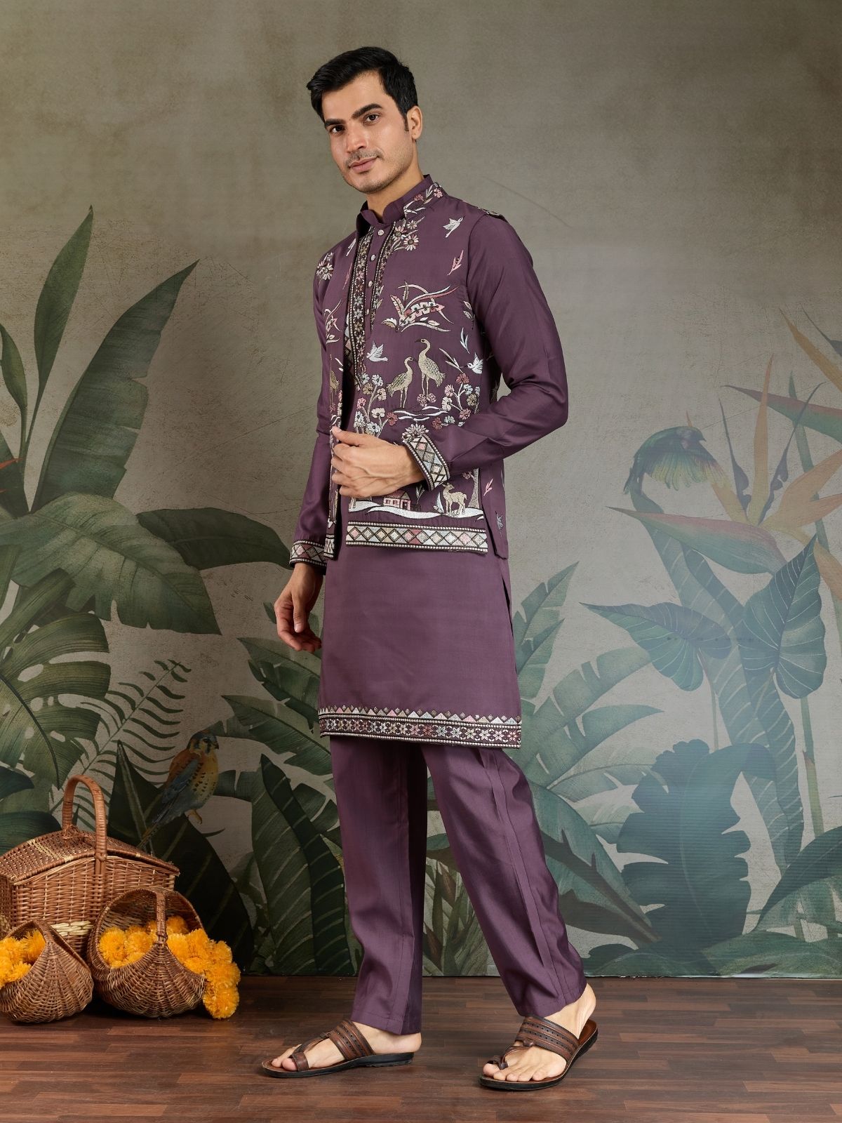 Embrace timeless elegance with this traditional men's kurta set. Crafted with premium fabrics and intricate detailing, it exudes sophistication. Ideal for cultural celebrations or casual events, offering comfort and style in equal measure.