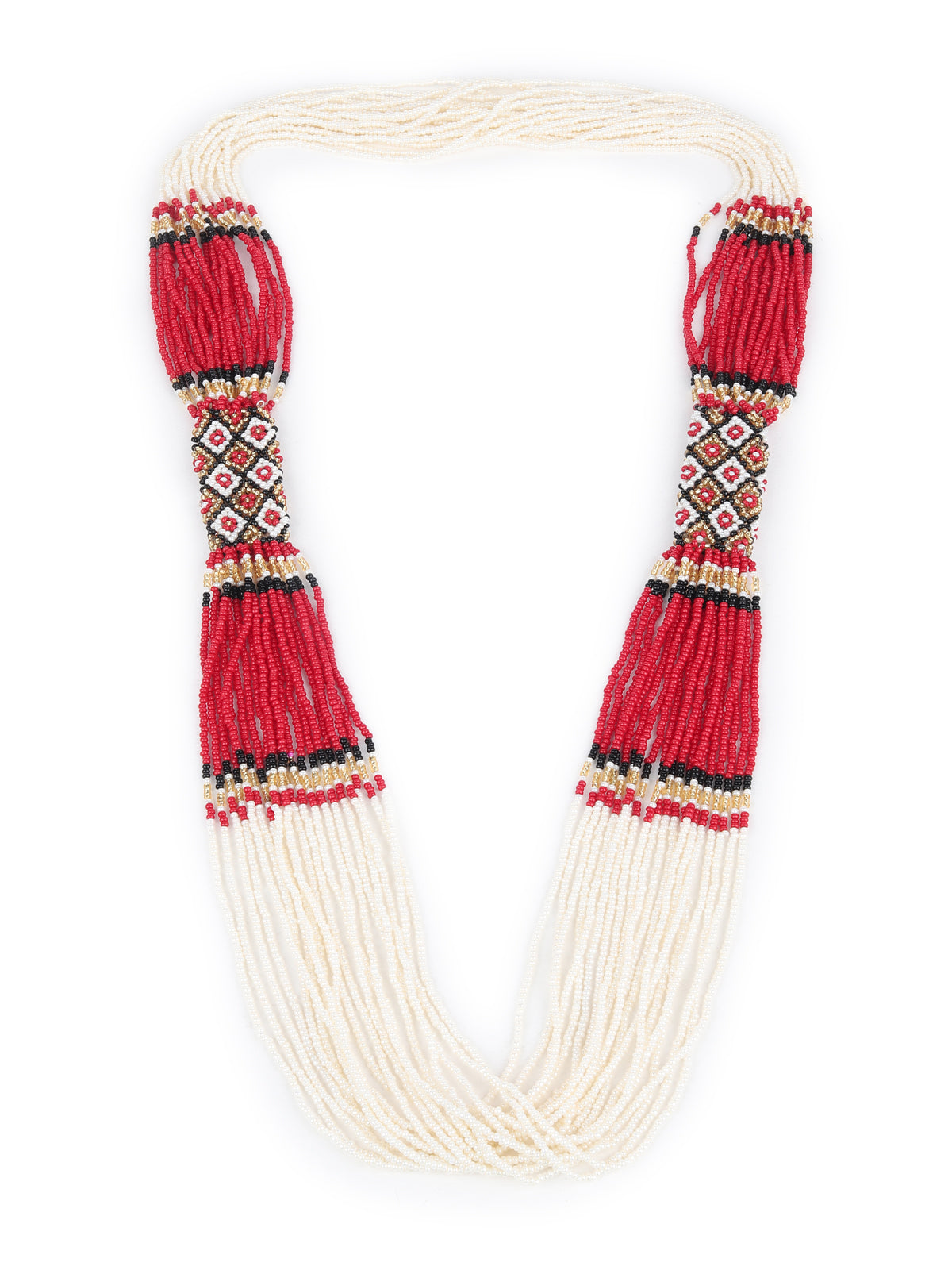 Adorn yourself with Rajwada's Red & White Beaded Neck Piece for a stunning look that speaks elegance and style effortlessly.