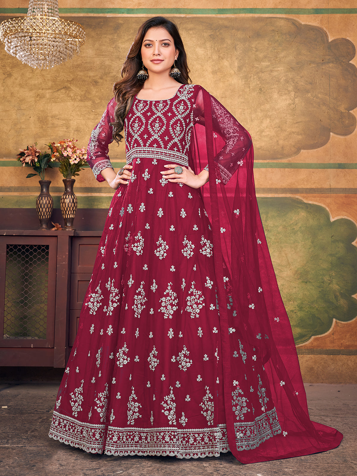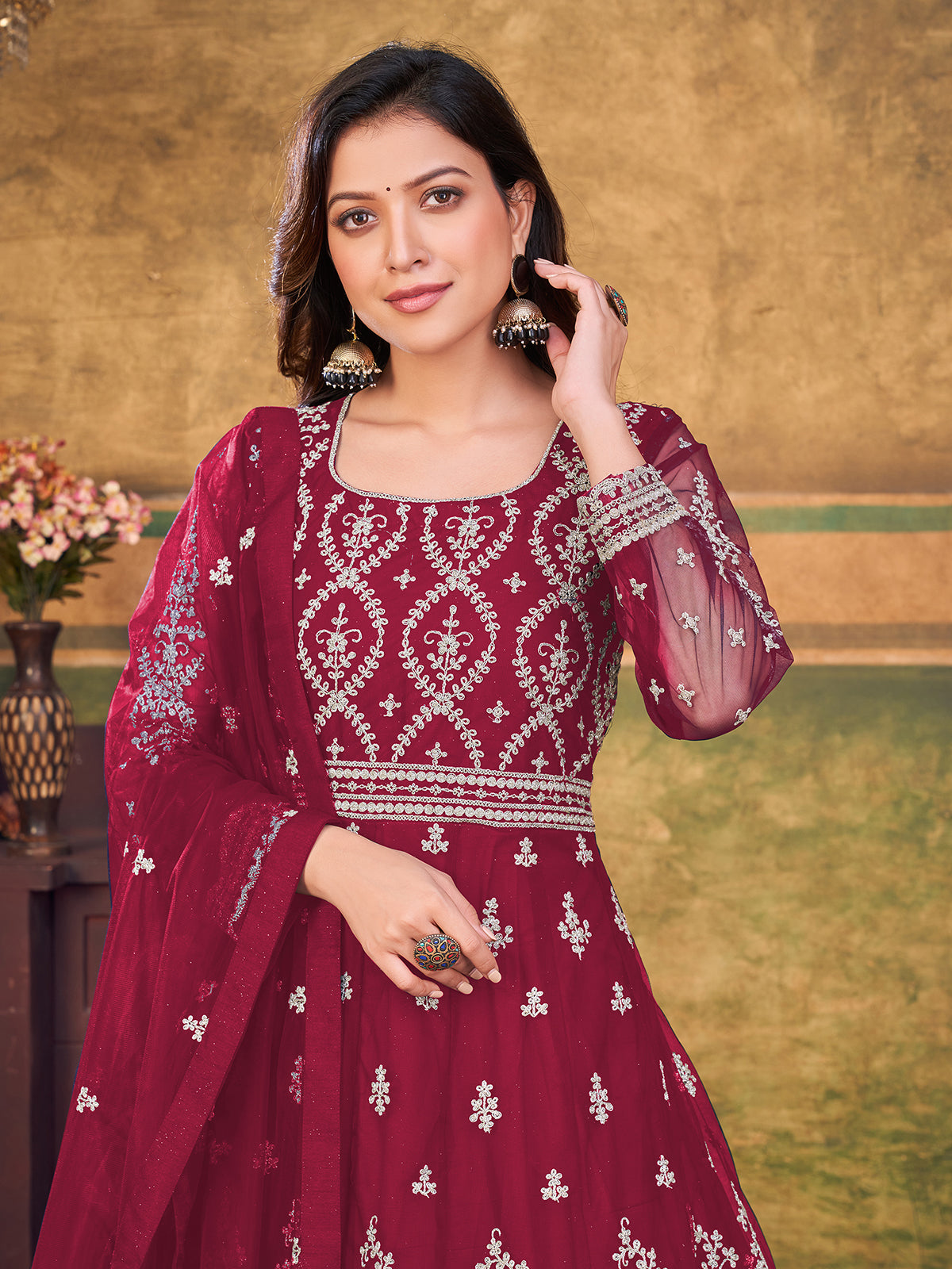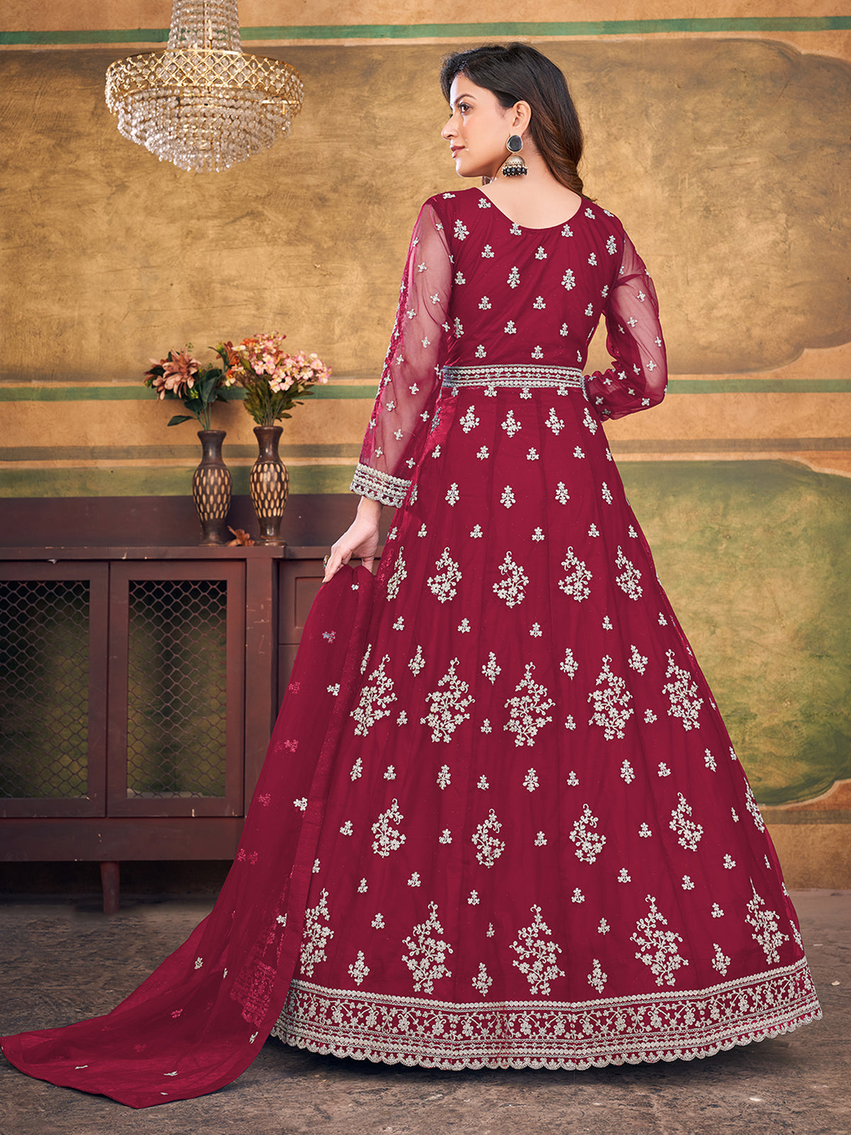 Rajwada Red Net Embroidered Semi stitched Kurta Set with Inner For Women