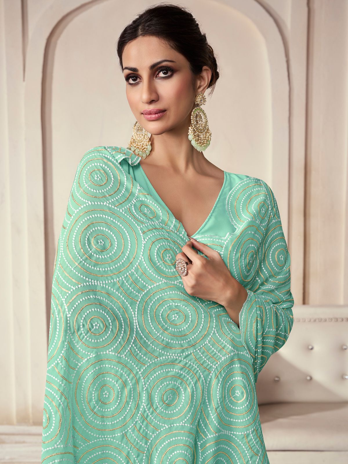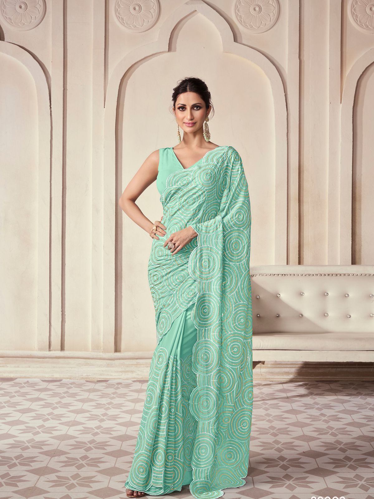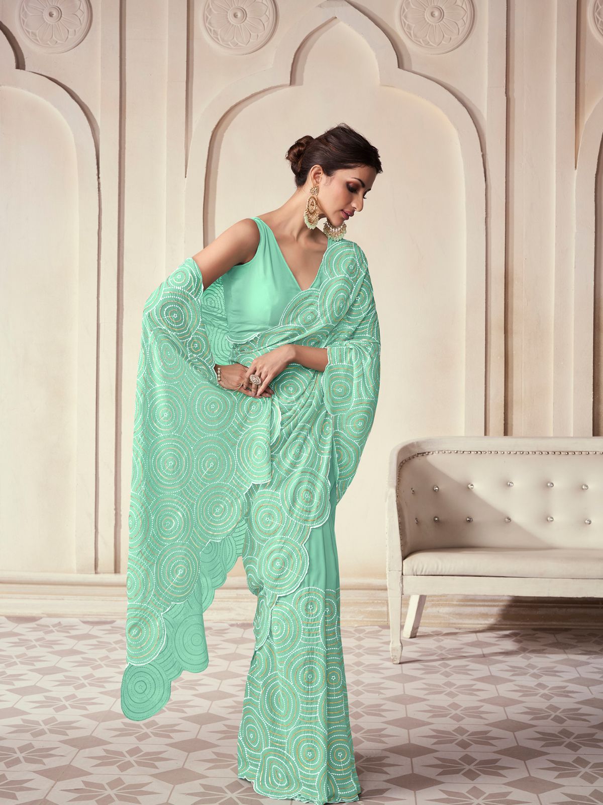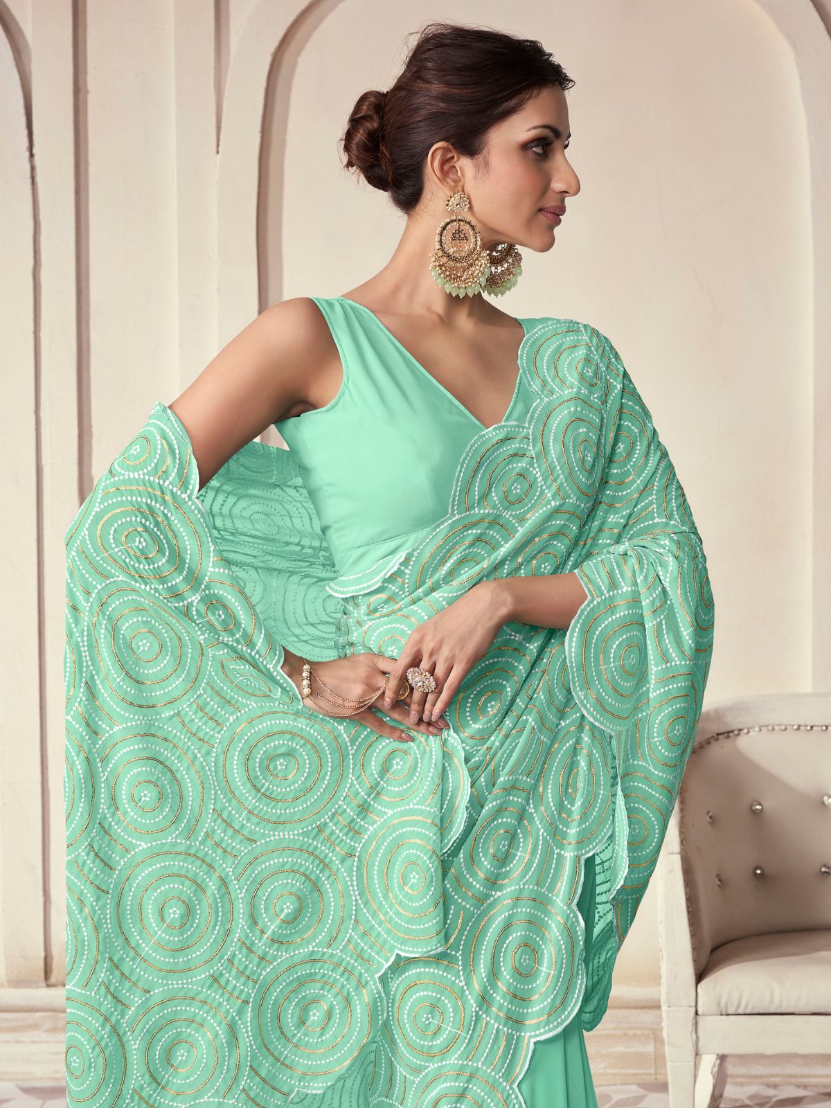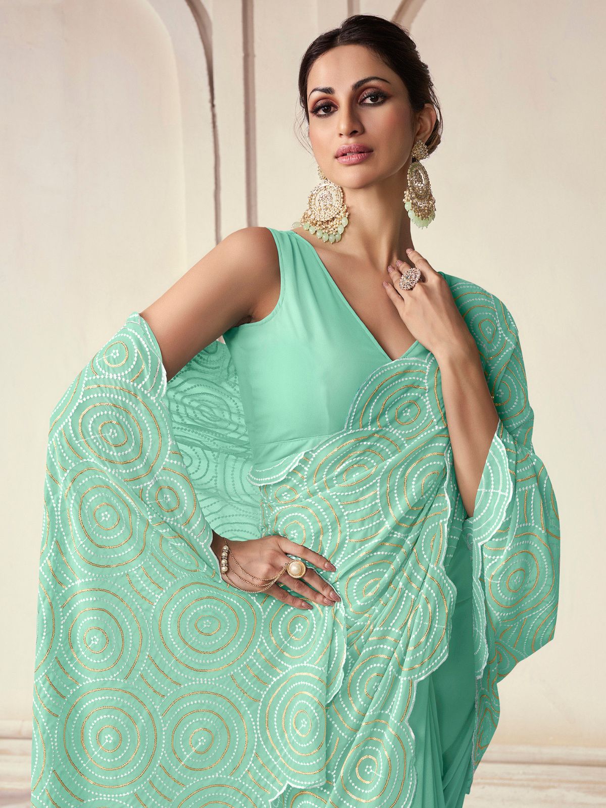 Gift yourself this lovely saree and be the cynosure wherever you go! Style this with a classy clutch and heels and you're good to go!