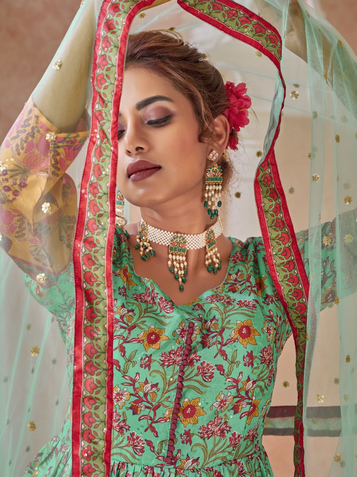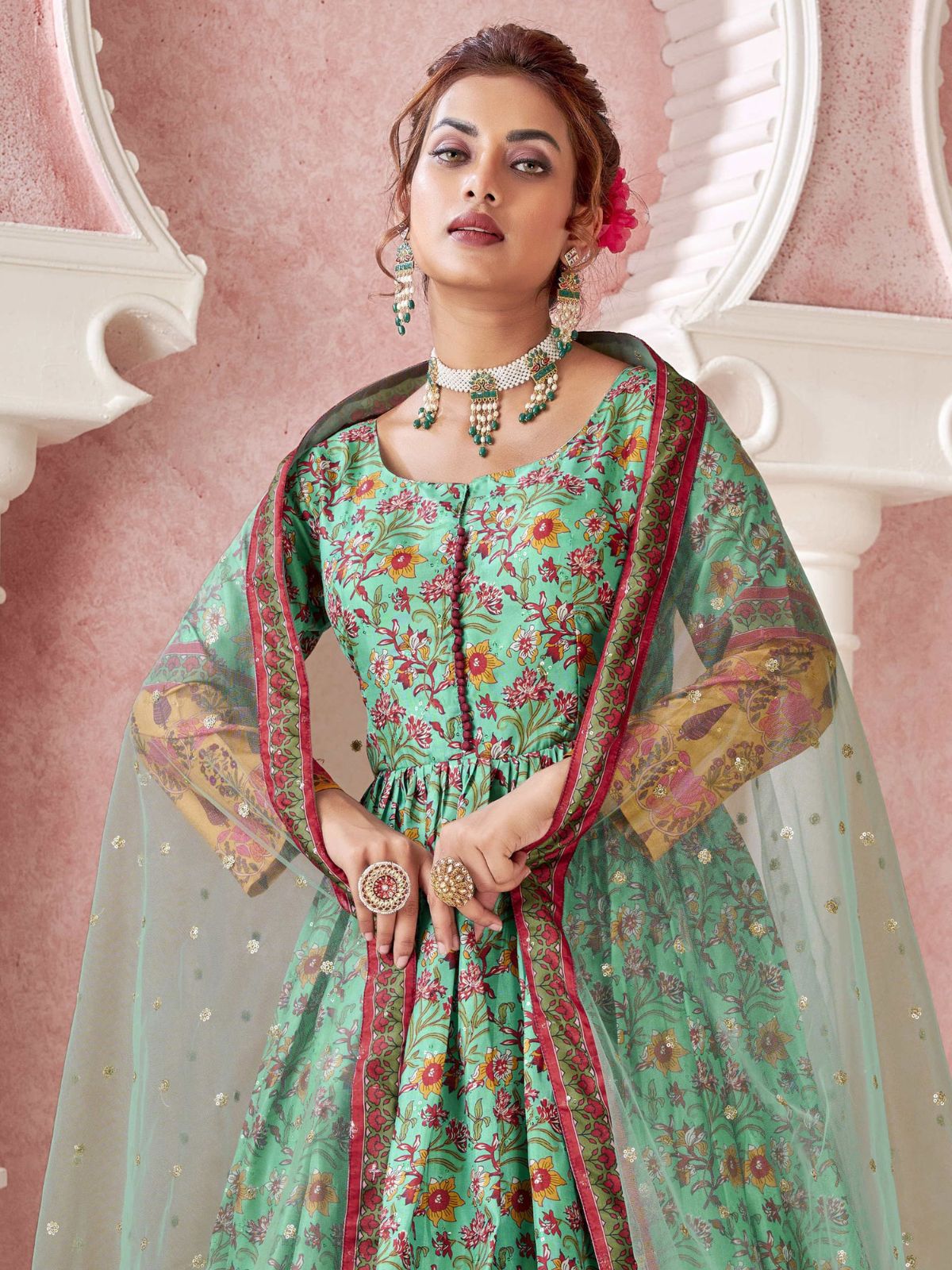 Look attractively gorgeous and beautiful after wearing this Gown. Women can buy this ethnic Gown to wear for their upcoming party, functions, receptions, engagement ceremony and family occasions, where you want to be the limelight.