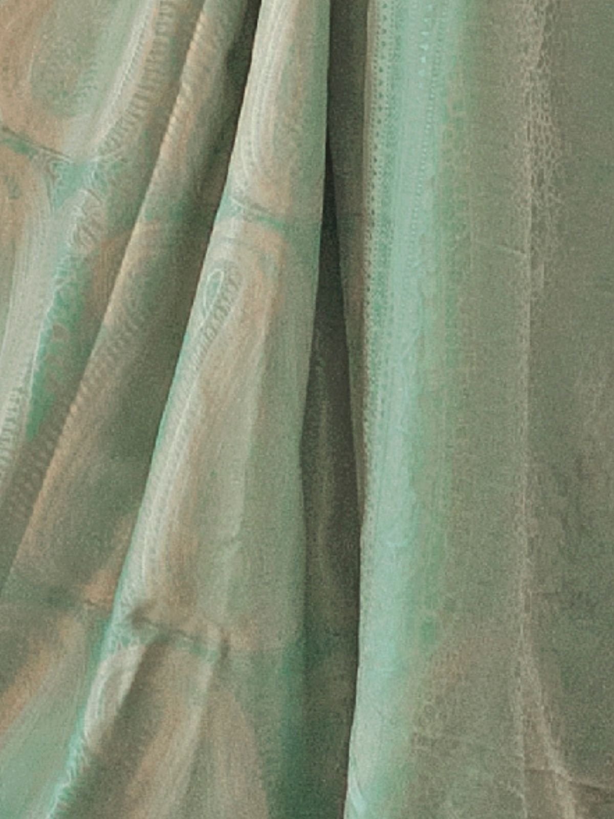 Rajwada Sea Green Silk Blend Woven Saree With Unstitched Blouse For Women