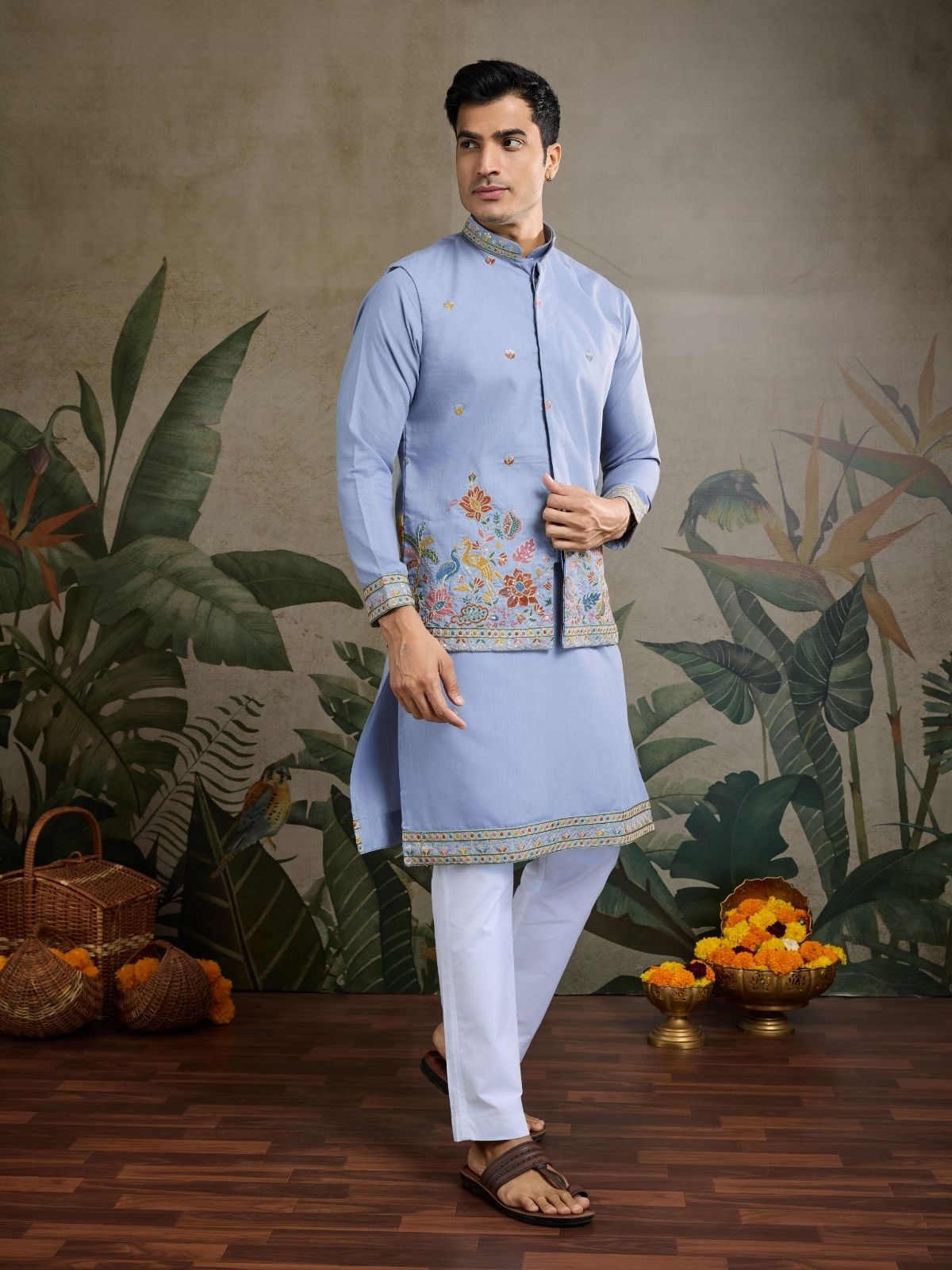 Embrace Timeless Elegance With This Traditional Men's Kurta With Jacket, Ideal For Cultural Celebrations Or Casual Events, Offering Comfort And Style In Equal Measure.