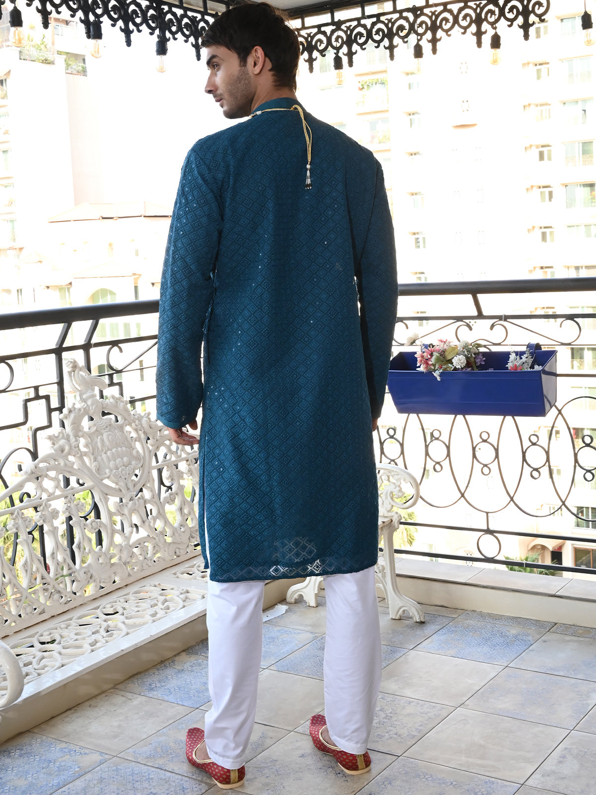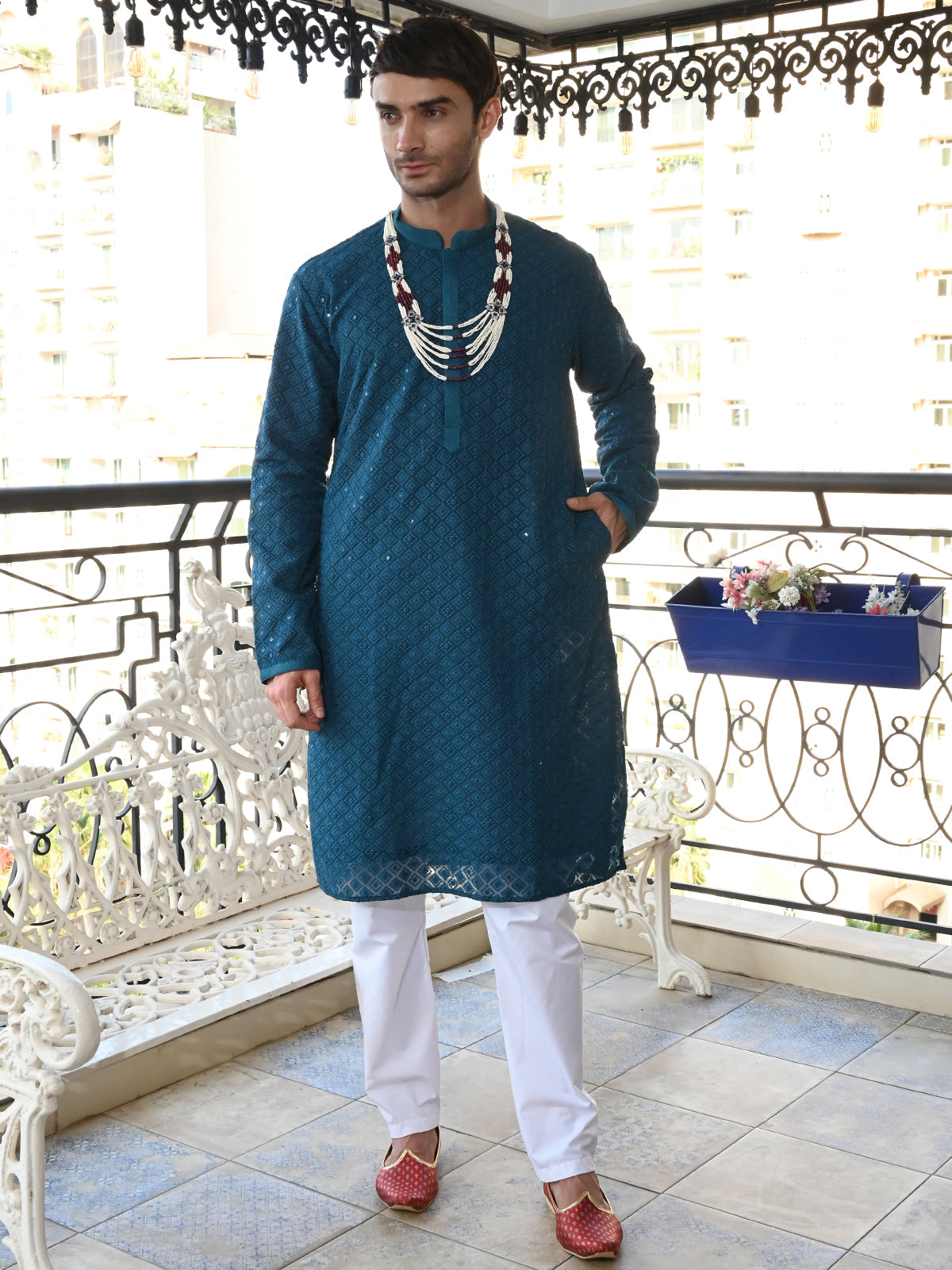 Embrace timeless elegance with this traditional men's kurta set. Crafted with premium fabrics and intricate detailing, it exudes sophistication. Ideal for cultural celebrations or casual events, offering comfort and style in equal measure.