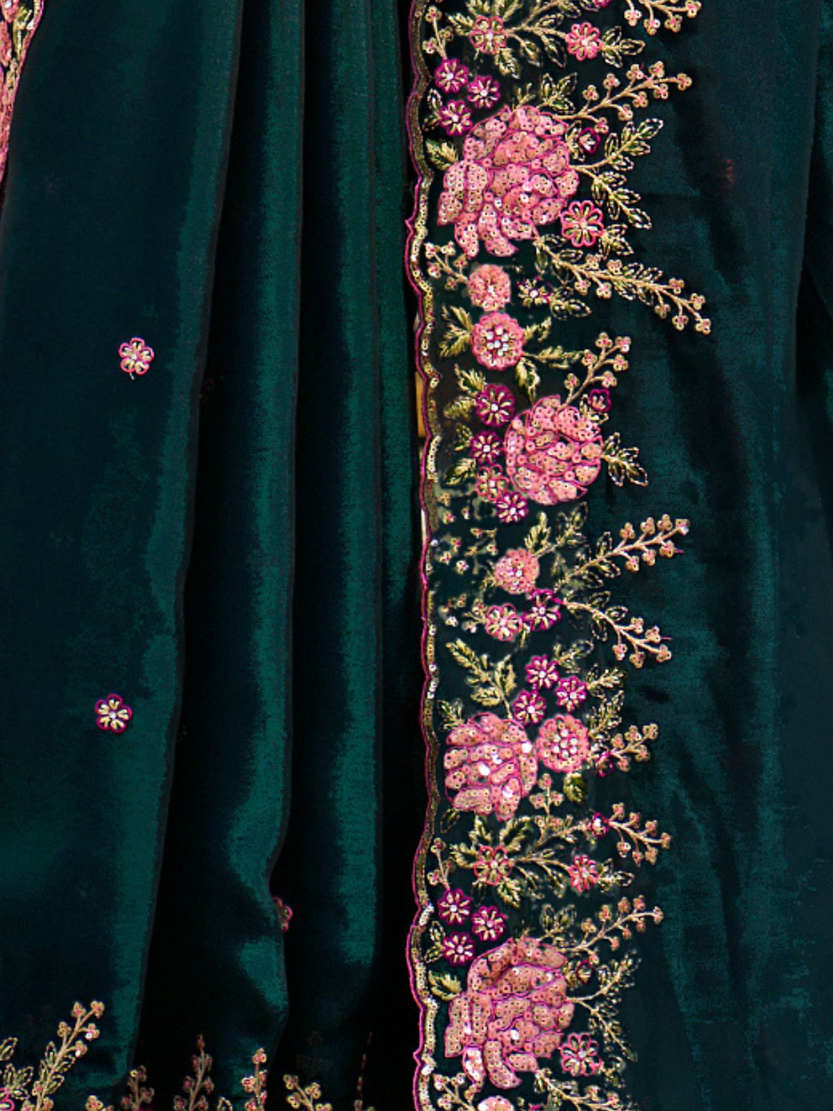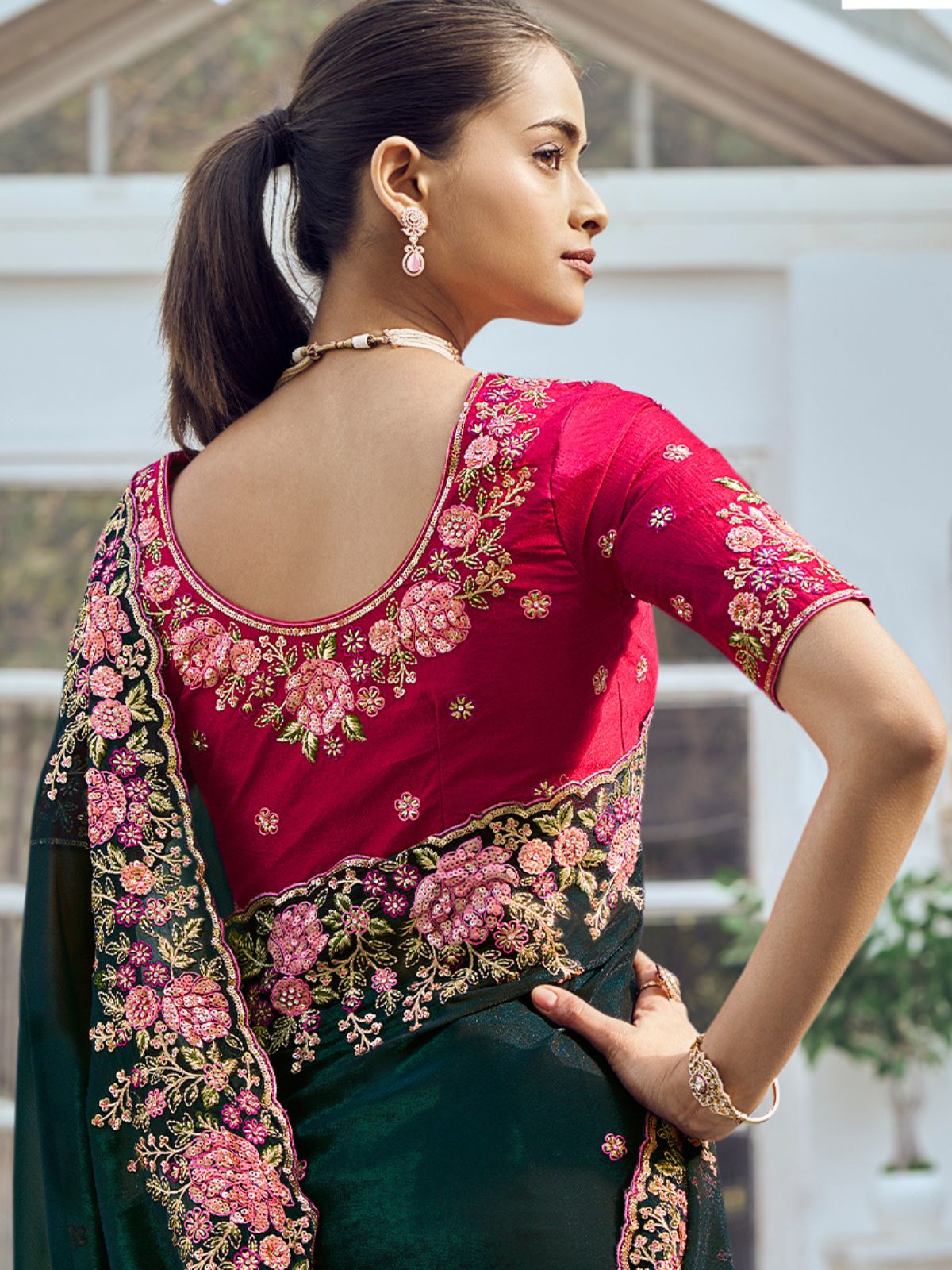 Gift yourself this lovely saree and be the cynosure wherever you go! Style this with a classy clutch and heels and you're good to go!