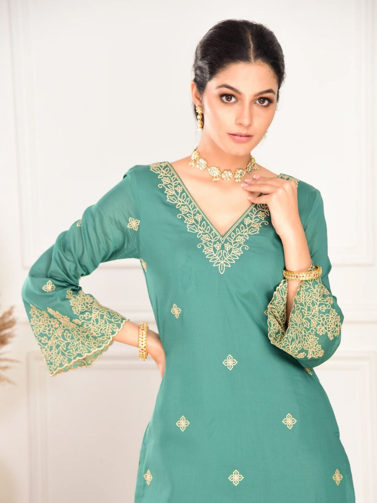 - Kurta Color : Teal Green