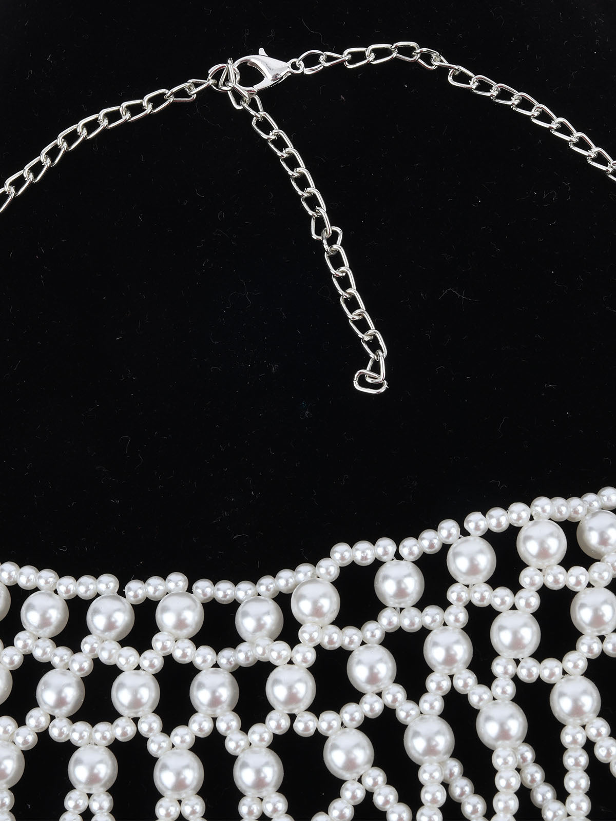 A Graceful Long Necklace Crafted From Lustrous White Pearls, Adding A Touch Of Elegance To Any Ensemble.