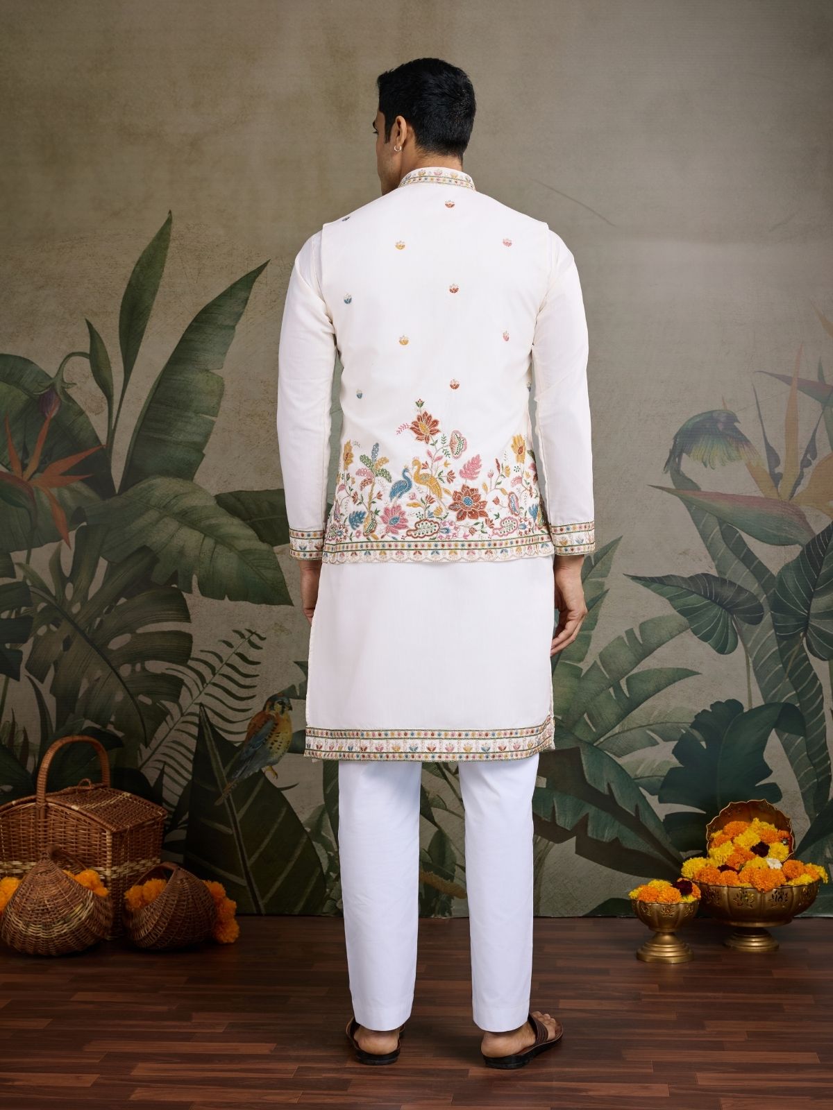 Embrace Timeless Elegance With This Traditional Men's Kurta With Jacket, Ideal For Cultural Celebrations Or Casual Events, Offering Comfort And Style In Equal Measure.