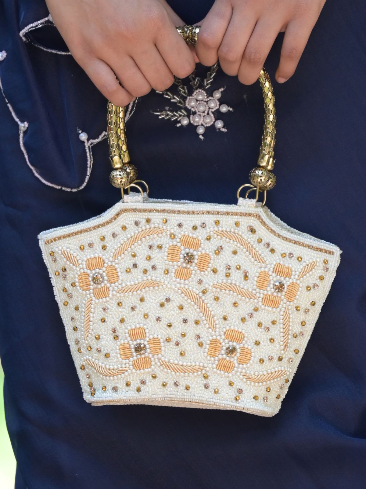 Rajwada White Embroidered Clutch Bag For Women