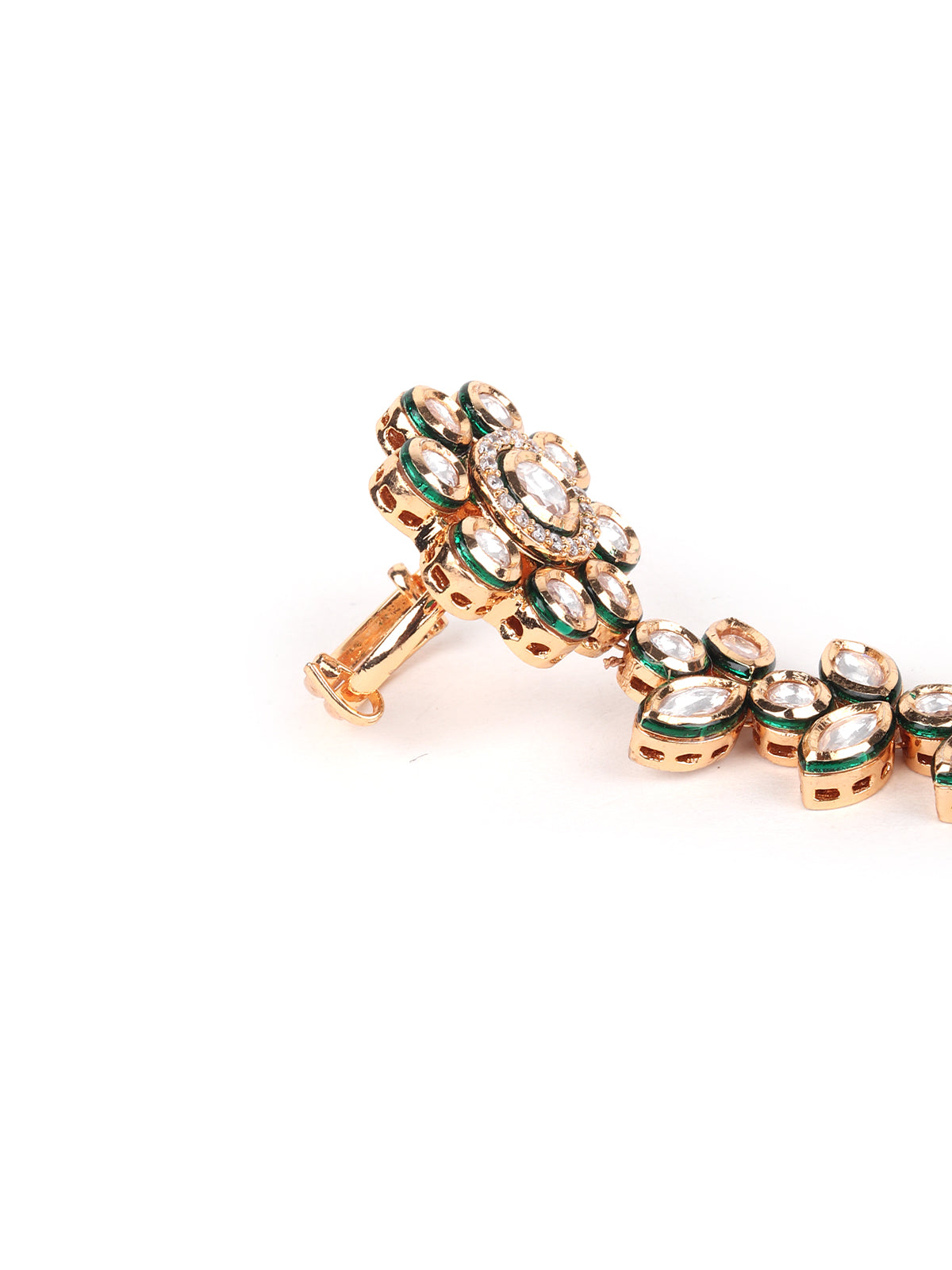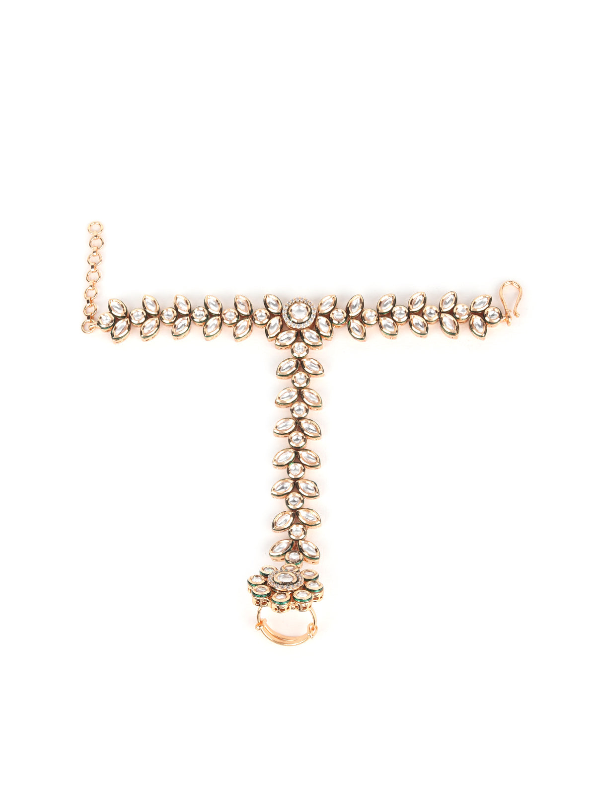 Grace both your hands with Rajwada's White Kundan Ring Bracelet for Women – a symphony of elegance and craftsmanship, perfect for sophisticated charm