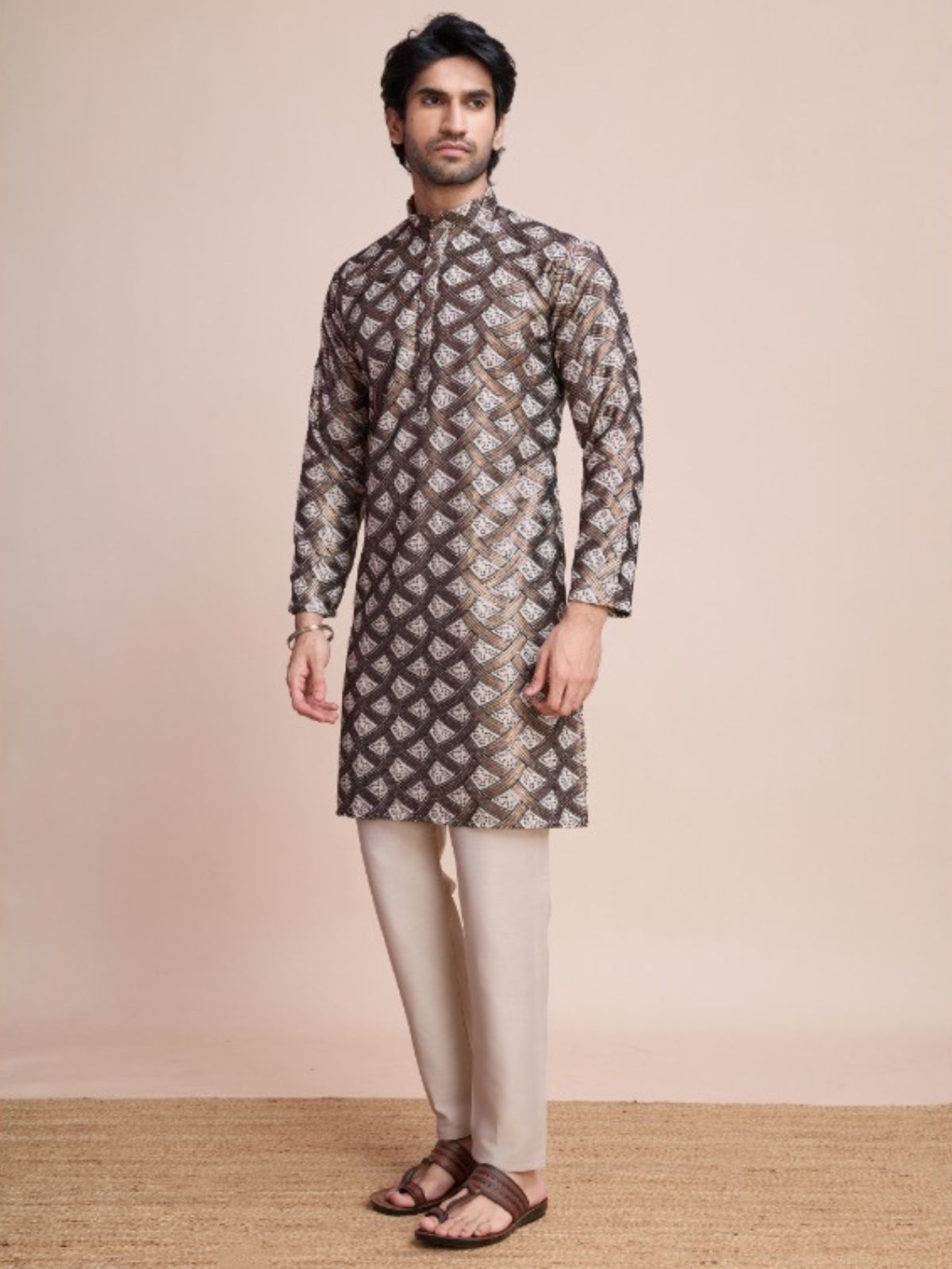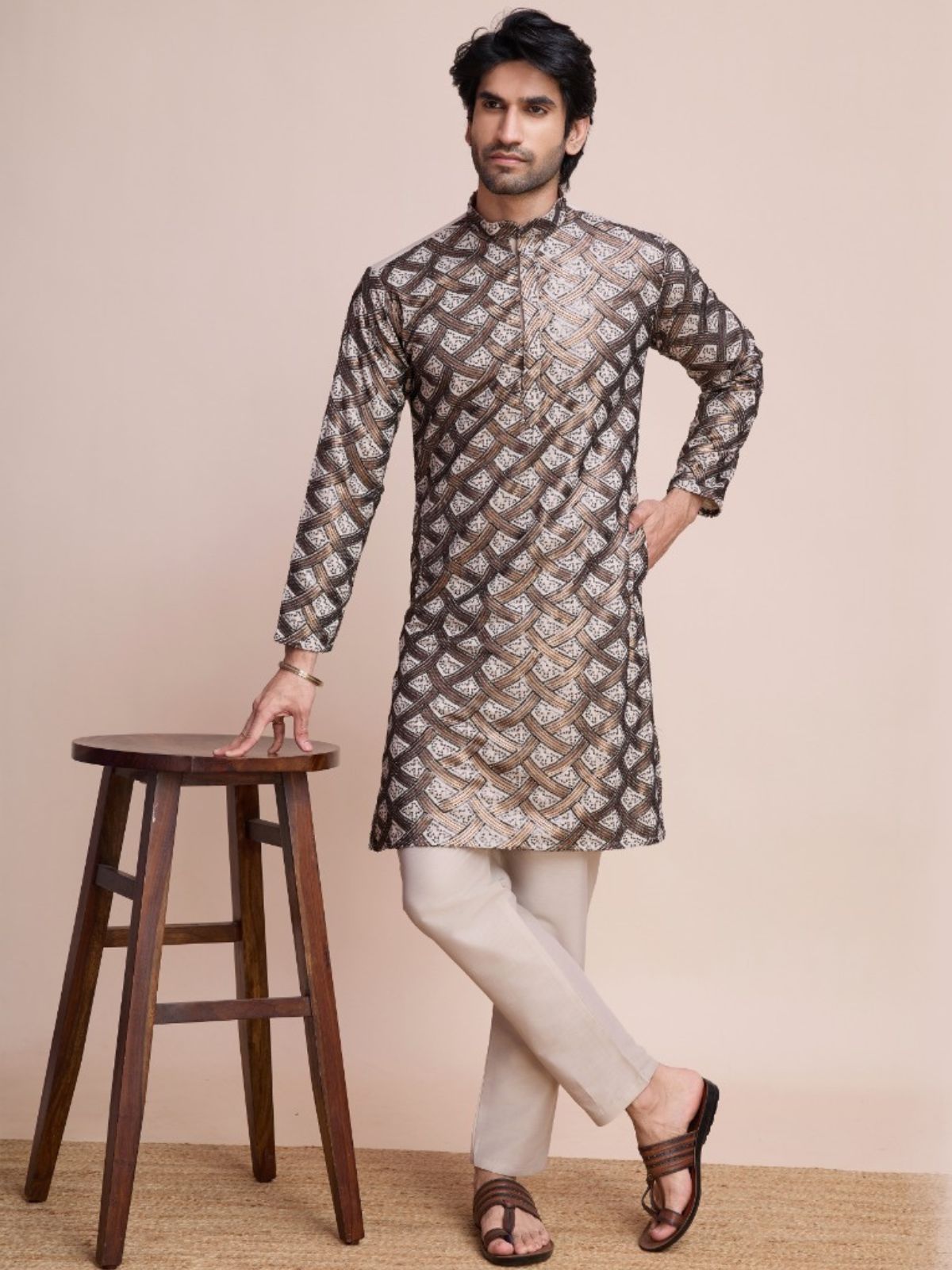 Embrace timeless elegance with this traditional men's kurta. Crafted with premium fabrics and intricate detailing, it exudes sophistication. Ideal for cultural celebrations or casual events, offering comfort and style in equal measure.