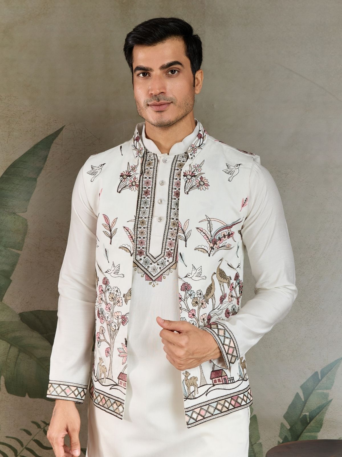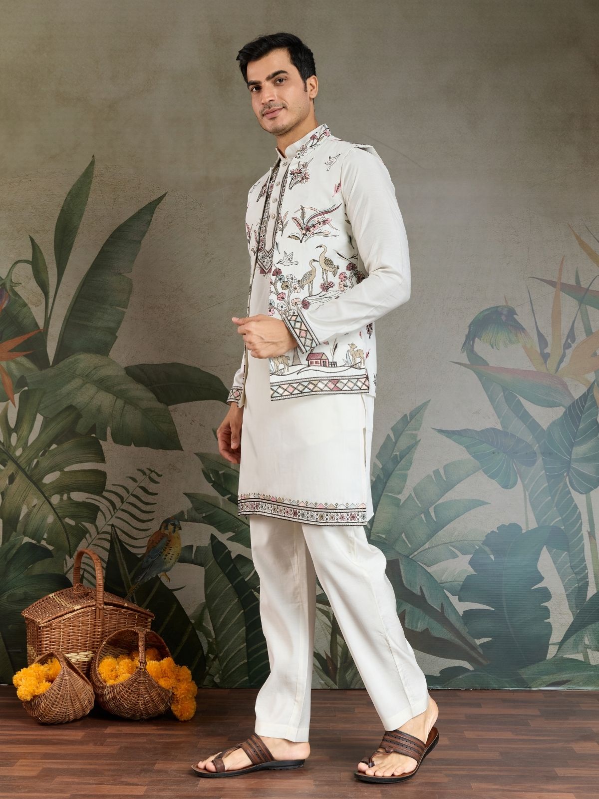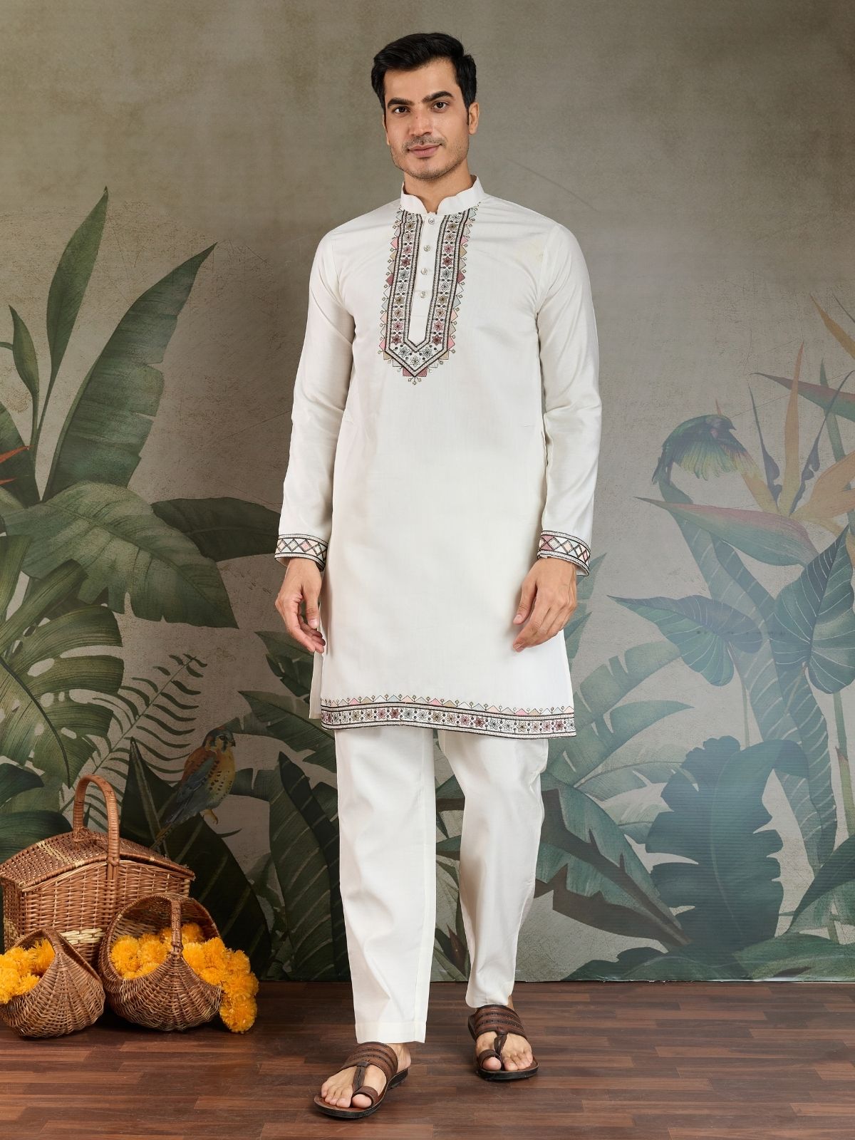 Embrace timeless elegance with this traditional men's kurta set. Crafted with premium fabrics and intricate detailing, it exudes sophistication. Ideal for cultural celebrations or casual events, offering comfort and style in equal measure.
