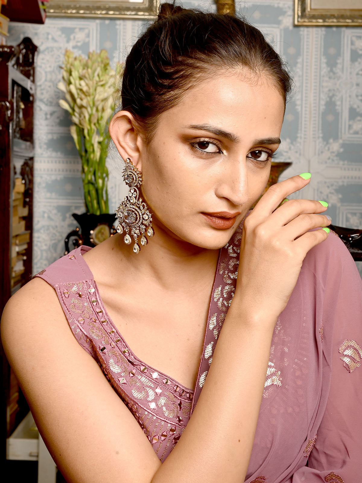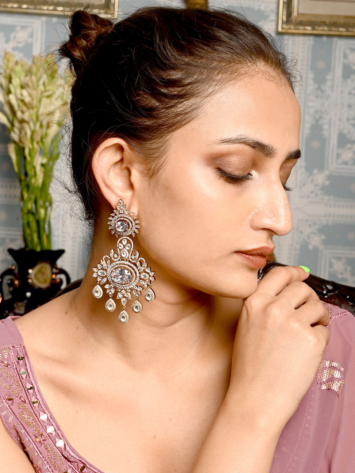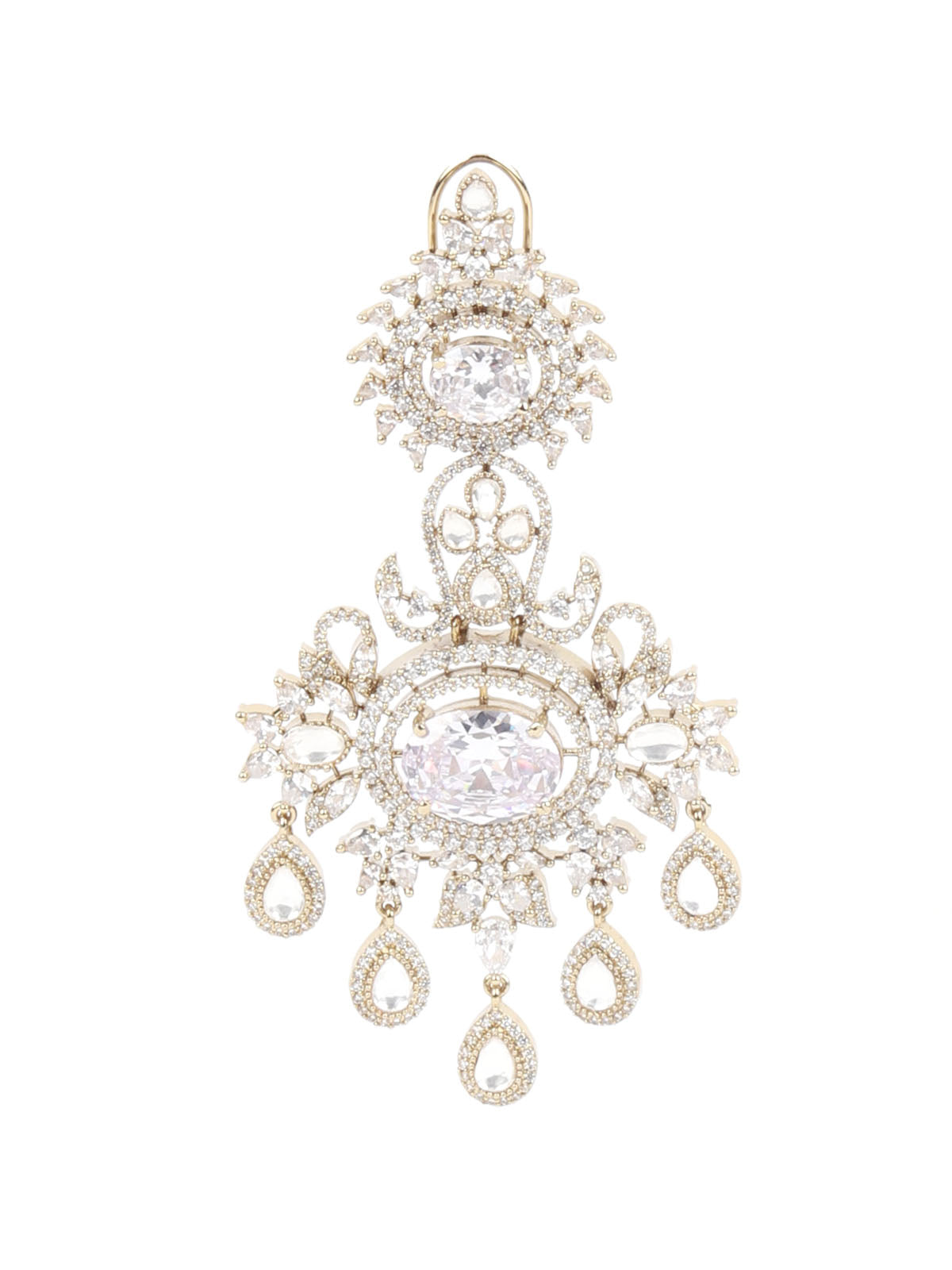 Gold-Toned & Sea Green Contemporary Drop Earrings, Has Artificial Stones And Kundan With Zircon Stone.