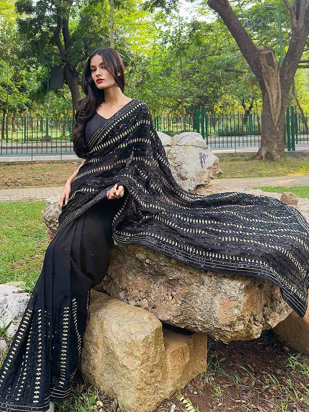 Feel Extraordinary By Adorning This Designer Georgette Saree. This Saree Is Highlighted With Sequins Work.