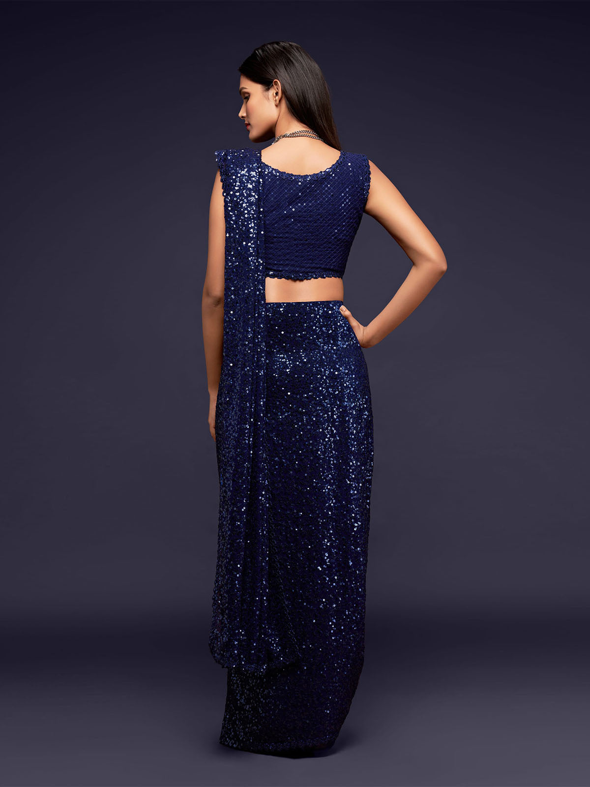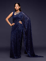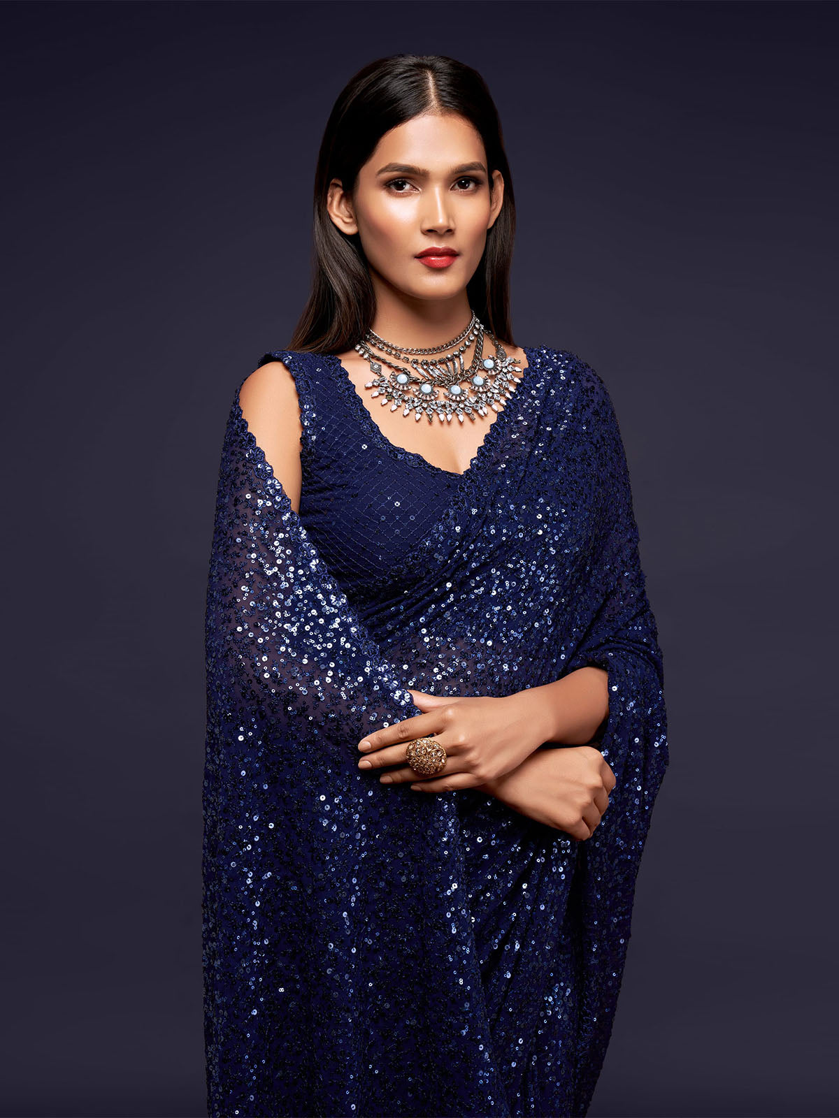- Be an absolute royalty of splendor by adoring this designer sequins saree in georgette material embellished with all dual sequins work.