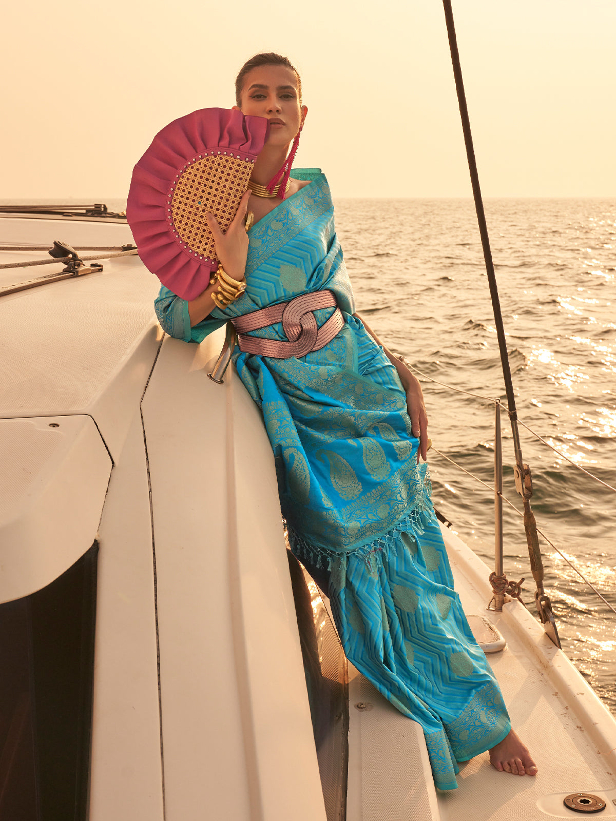 Feel Extraordinary By Adorning This Designer Silk Blend Saree. This Saree Is Highlighted With Weaving.